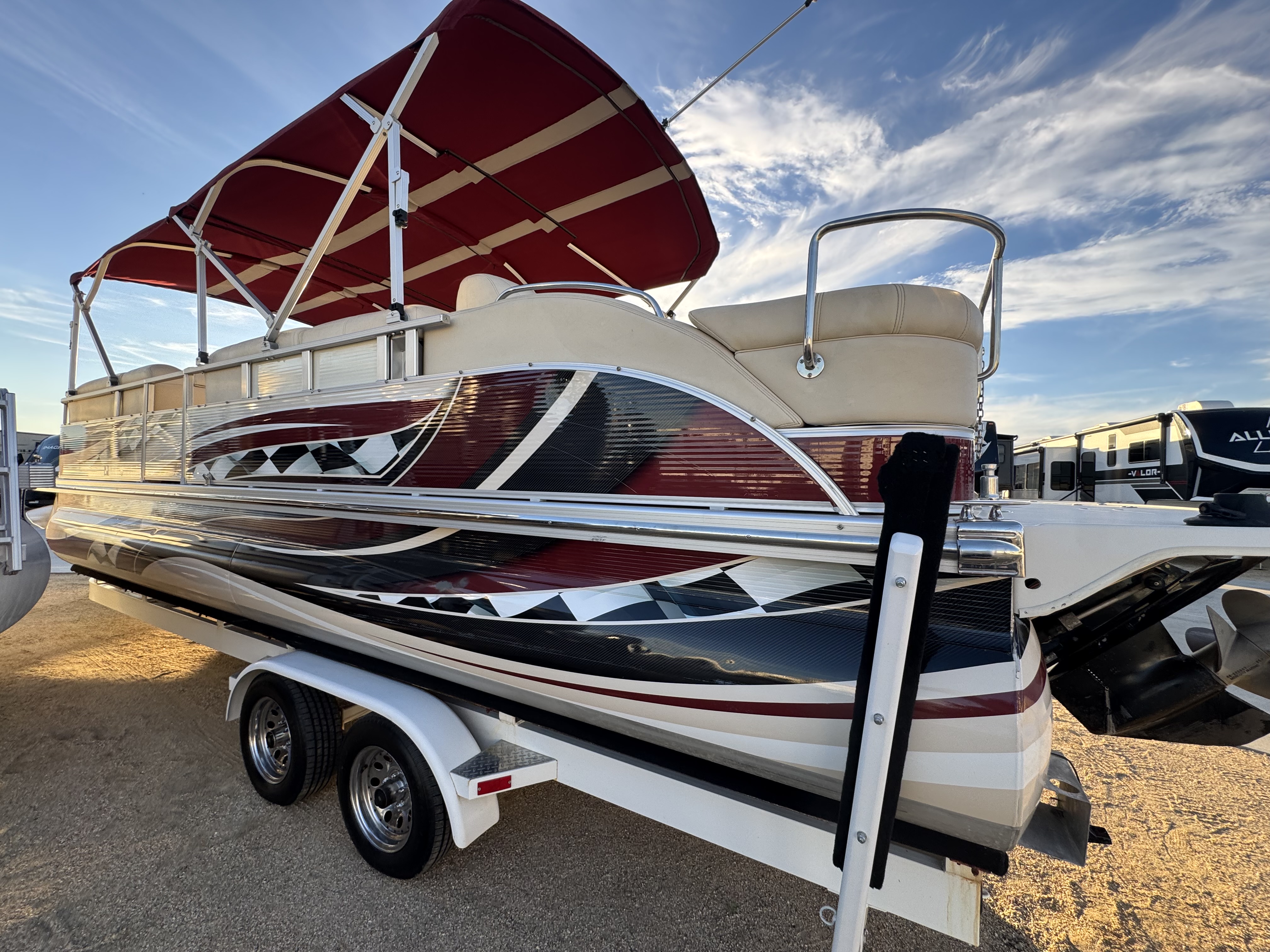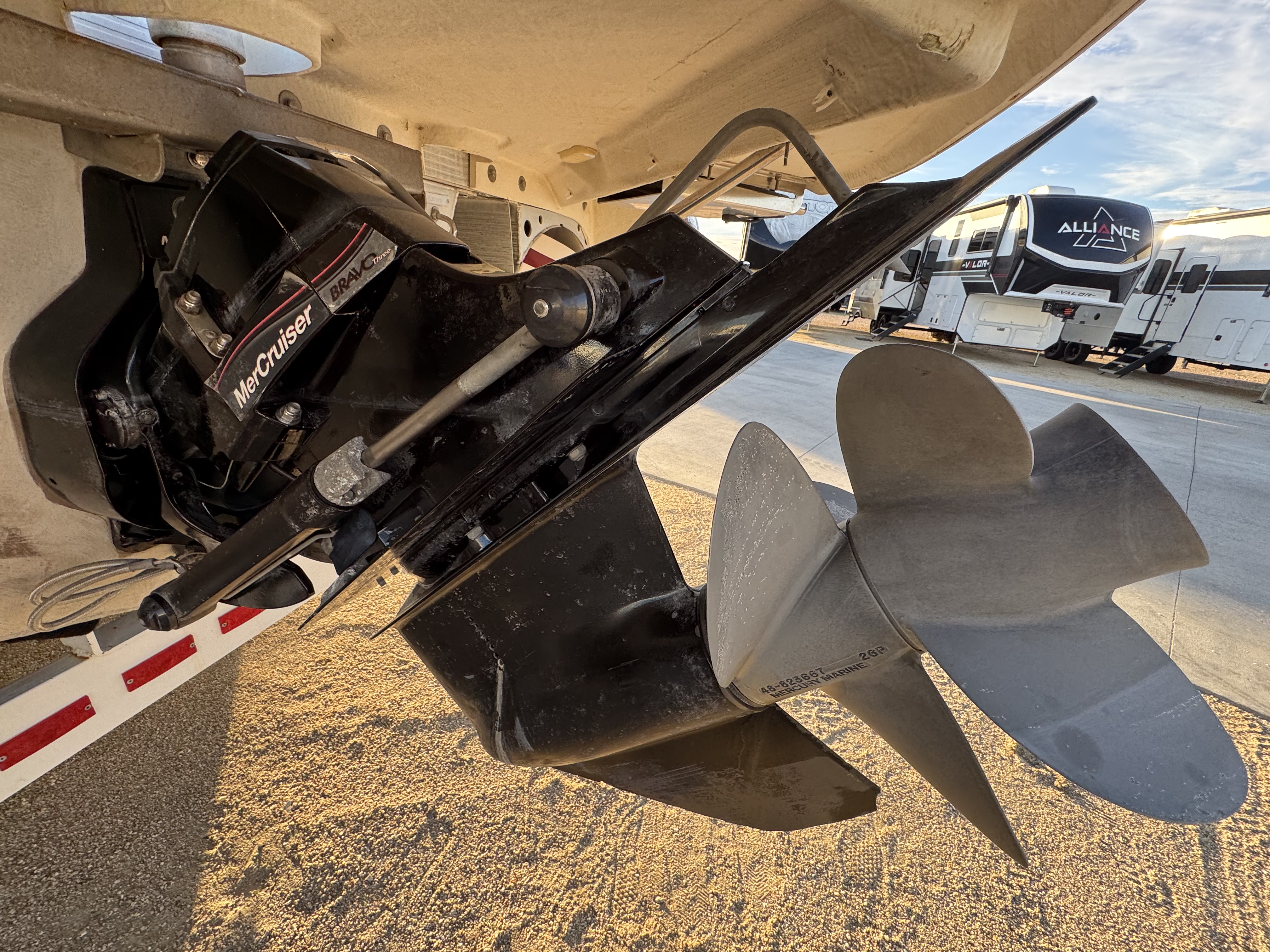 This boat was just serviced in 2025 by Barrett Custom Marine here in Lake Havasu it was a complete service including drive and new batteries installed also the tires were just replaced in 23'