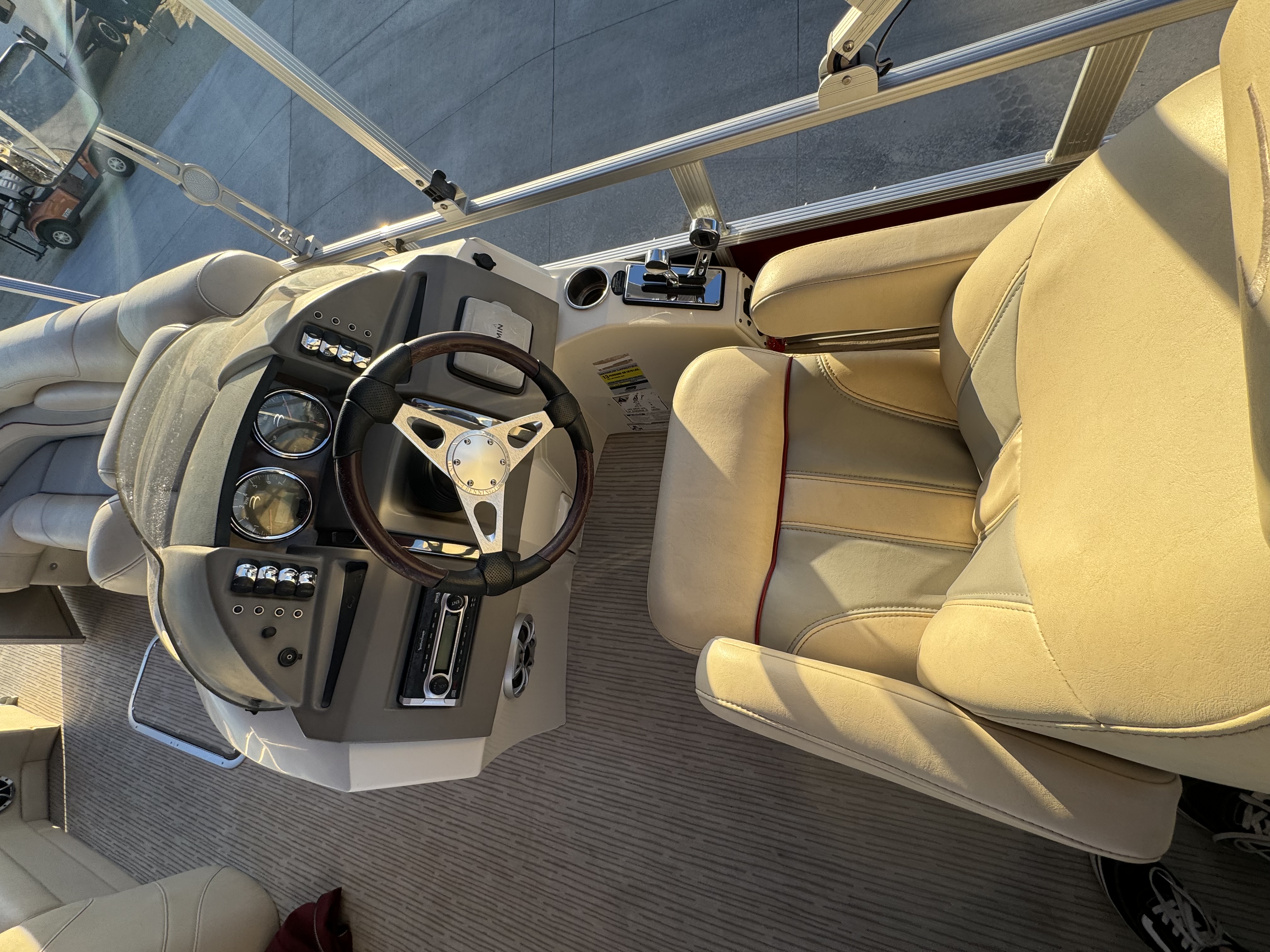 This is one very well cared for 2010 Bennington 2375RL "inboard" which is awesome because the entire rear deck is now a "sun deck" or a very roomy lounging area!