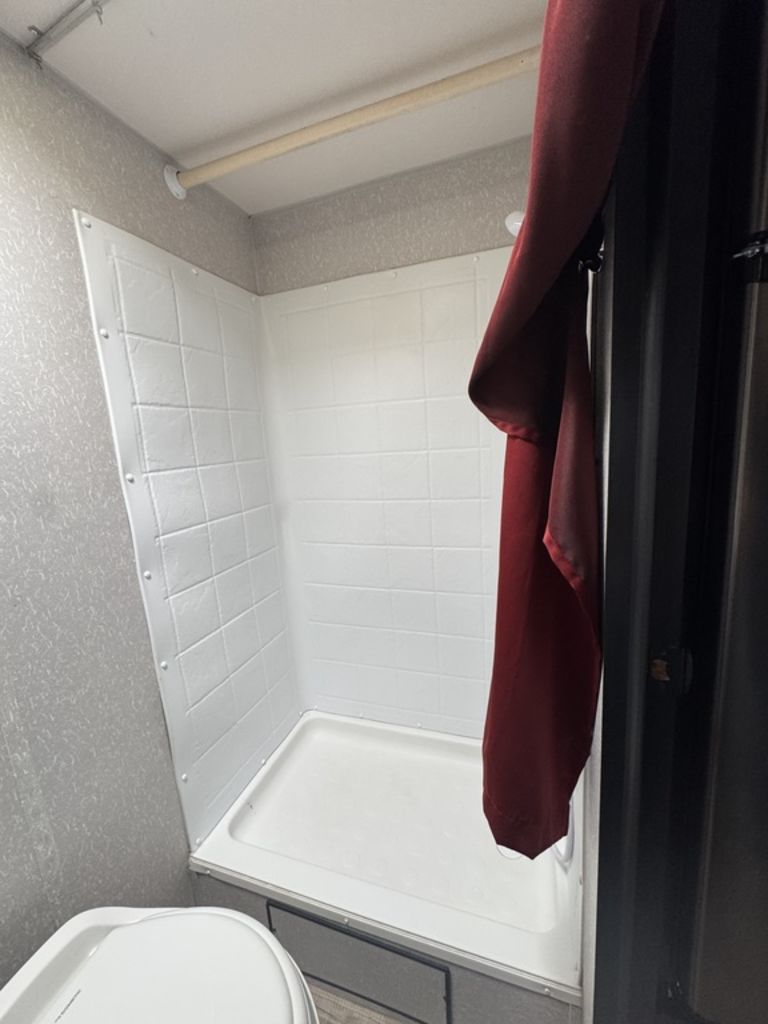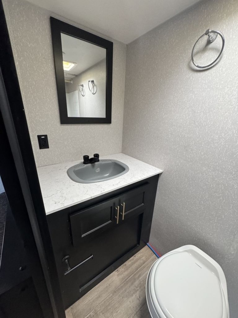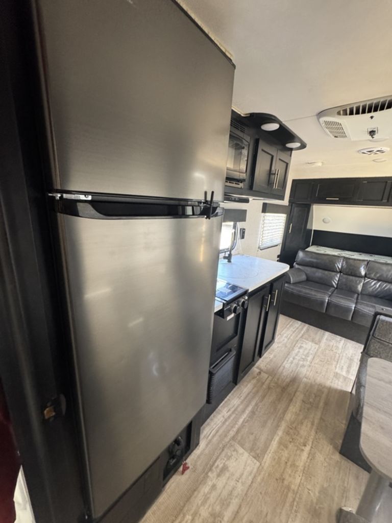 The Cherokee Sleep System allows you to convert your bed to a comfortable sofa in seconds. A large kitchen boasting a flush mount glass cook top, huge sink, ample counter space, and 10.3 cu.ft. double door refrigerator. The rear bathroom showcases a large sink area with cabinet storage below. Exterior features include a full size power awning, outside mini kitchen, MORryde stable step, RVQ quick connect system, standard coach stabilizing system, and LED lighting.