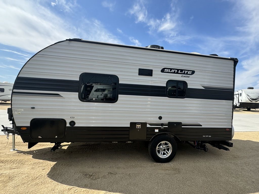 **Welcome to JR Motors Mohave County's premier RV dealership*** ***REDUCED PRICE ALERT*** $14500 TAKES IT AWAY*** (It's 15k plus tax, doc, reg) that's it no other hidden fees!!! You will love the versatility of this travel trailer! The front dinette not only offers a comfortable place to enjoy a meal made with the two burner cooktop and play a card game, but it also transforms into a 89" x 72" bed. The full bathroom has a tub and a power vent fan to eliminate any unwanted steam. Crank up the tunes with the outside speakers, extend the 14' electric awning, and invite a few campground neighbors over for a good time! Some very nice features on this one including new tires 10/24, and very well taken care of all the way around in great shape! Welcome to JR Motors Mohave County's #1 RV dealership..if your in the market for very light, very easy RV for just blasting off for the weekend then we have you taken care of with this little travel trailer!! It's the perfect RV for taking off Friday night after work and coming home Sunday night, fishing, camping, hiking, cycling whatever your gig this little Sunlite will keep you out of the elements and only $14500 YOUCAN'T GO WRONG!!! Call us today JR Motors 928-680-2886 Open 7-days a week