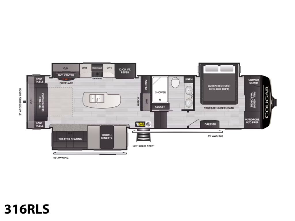 Keystone Cougar fifth wheels deliver a refined collection of the most livable, full-profile floorplans at ultra-towable lengths. Standard features like MaxTurn Technology™, Road Armor™, and HitchVision™ deliver unparalleled towing control, and innovations like iN-Command® smart RV control system and Climate Guard™ all-season protection make Cougar a winning choice for full-time and extended-stay camping.