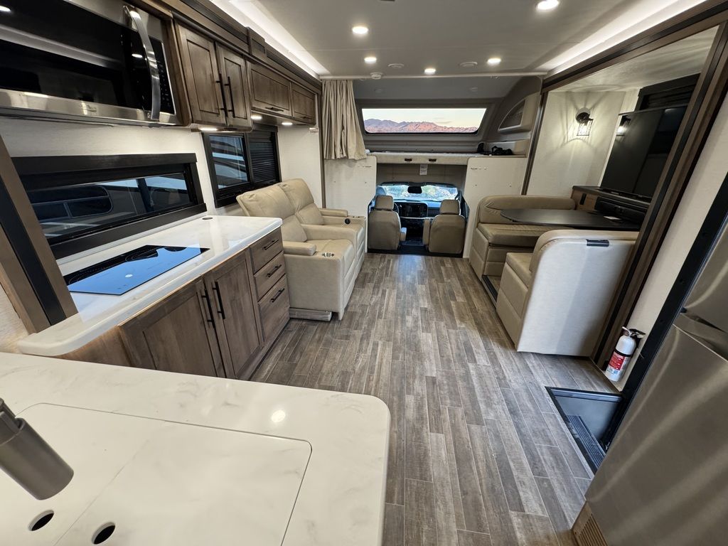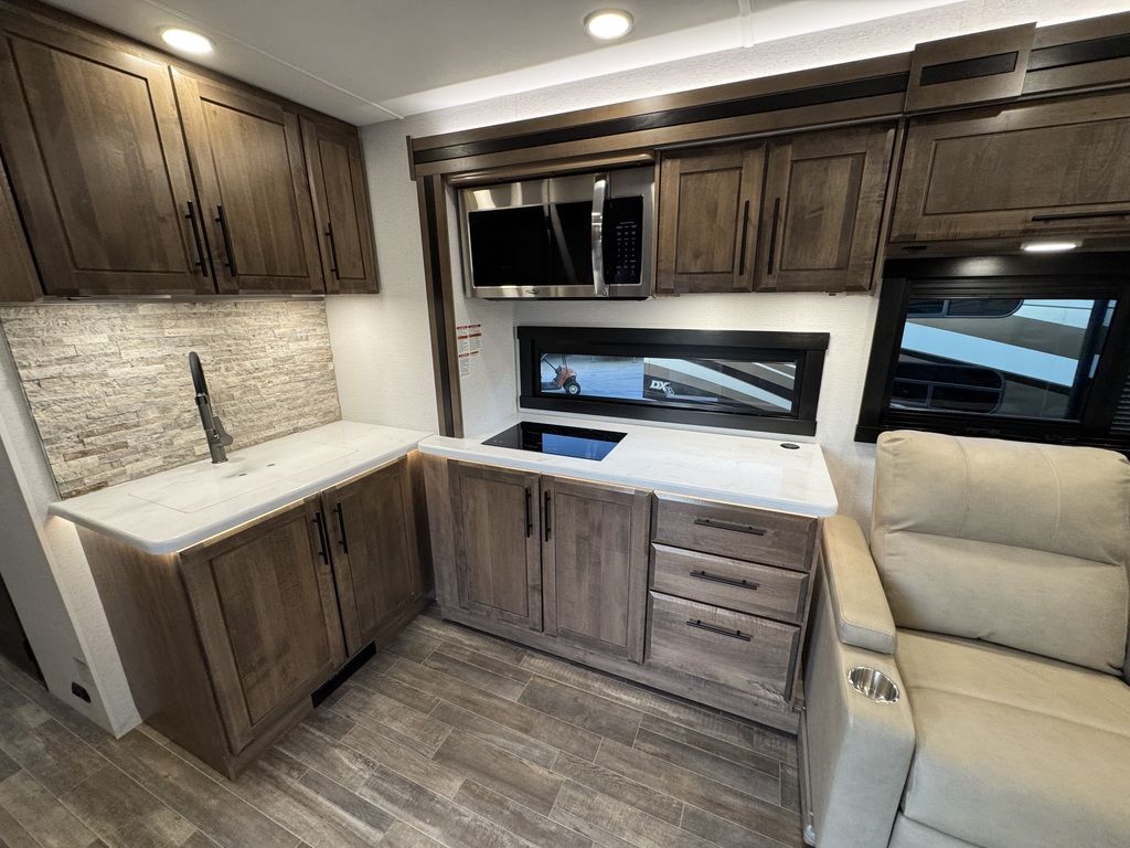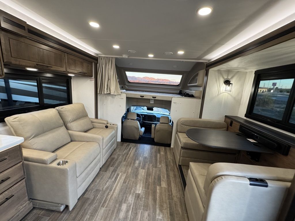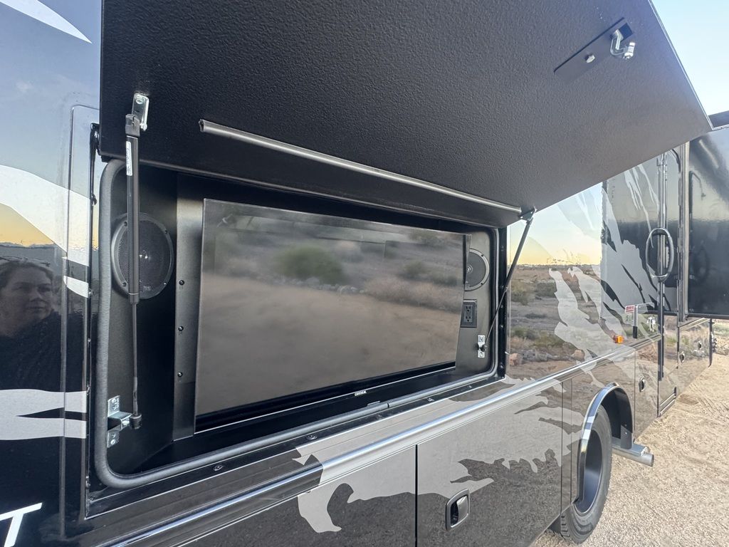 Go where others can’t in the Entegra Coach Accolade XT Super C. Its rugged all-terrain exterior has integrated front and rear auxiliary lighting, a custom bumper and a 2-inch BDS radius arm suspension lift. Improved ground clearance allows you to get into nature, while the E-Z Drive® Premier Ride and Handling Package allows you to enjoy being off the beaten path without experiencing every bump. Koni® shocks enhance stability and control, minimizing bounce and sway while driving over uneven surfaces. An added bonus is the protection it provides the vehicle’s suspension system. This durable, powerful diesel chassis is capable of towing heavy loads, including a trailer with all of your favorite outdoor toys. Even the awning is ready for the elements on the Accolade XT. The electric, wind-sensing legless patio awning with LED lights has a motion sensor that pulls the awning in if there is a threat of strong winds or bad weather. Fully enclosed basement storage and holding tanks are protected from the elements. For those remote places, the standard Starlink satellite internet system provides a super reliable internet connection, so you won’t have to worry about losing signal when important deadlines loom or you want to watch the next episode of that series you’re binging.