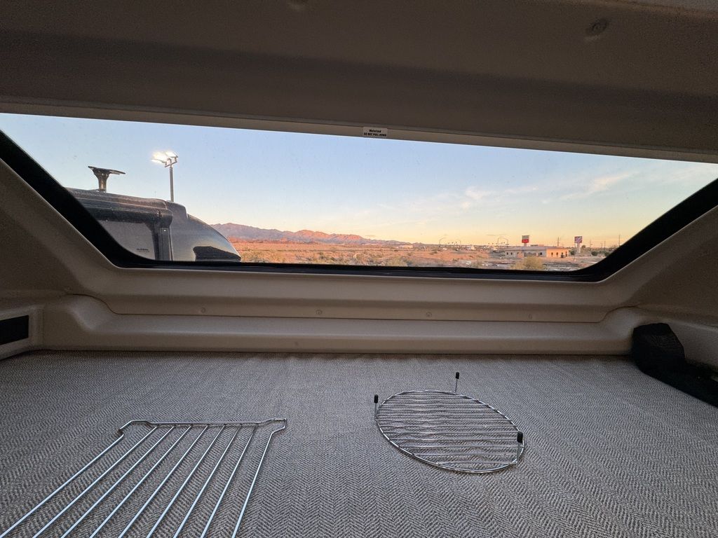 - One-piece, seamless fiberglass front and rear caps; Automotive-bonded panoramic window in front cap with power shade