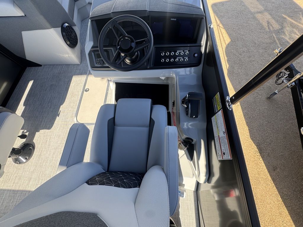 Elegantly crafted with intention, the 23L commands attention with its refined presence on the water. Paired with premium Mercury outboard engines, it delivers smooth, powerful performance. The spacious stern lounge offers multiple seating configurations for a first-class experience, enhanced by the convenience of integrated cupholders and a Roswell Stern Audio Remote.