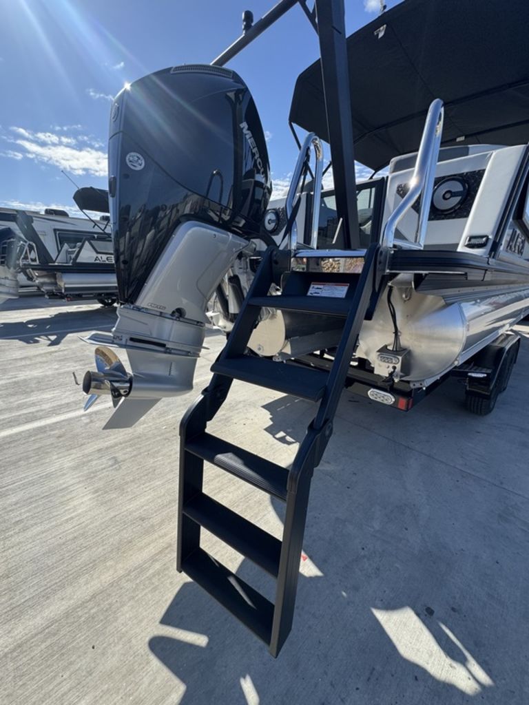 Its tritoon (triple pontoon) design enhances stability and buoyancy, while the wider deck layout offers increased space for seating, storage, and movement—perfect for social gatherings, watersports, or relaxing cruises. Equipped with a powerful Mercury Verado engine, the Model M delivers superior acceleration, towing capability, and reliability, ensuring smooth and responsive handling in various water conditions. Whether you're seeking speed, space, or style, the Alera Model M tritoon provides a balanced, high-performance boating experience.