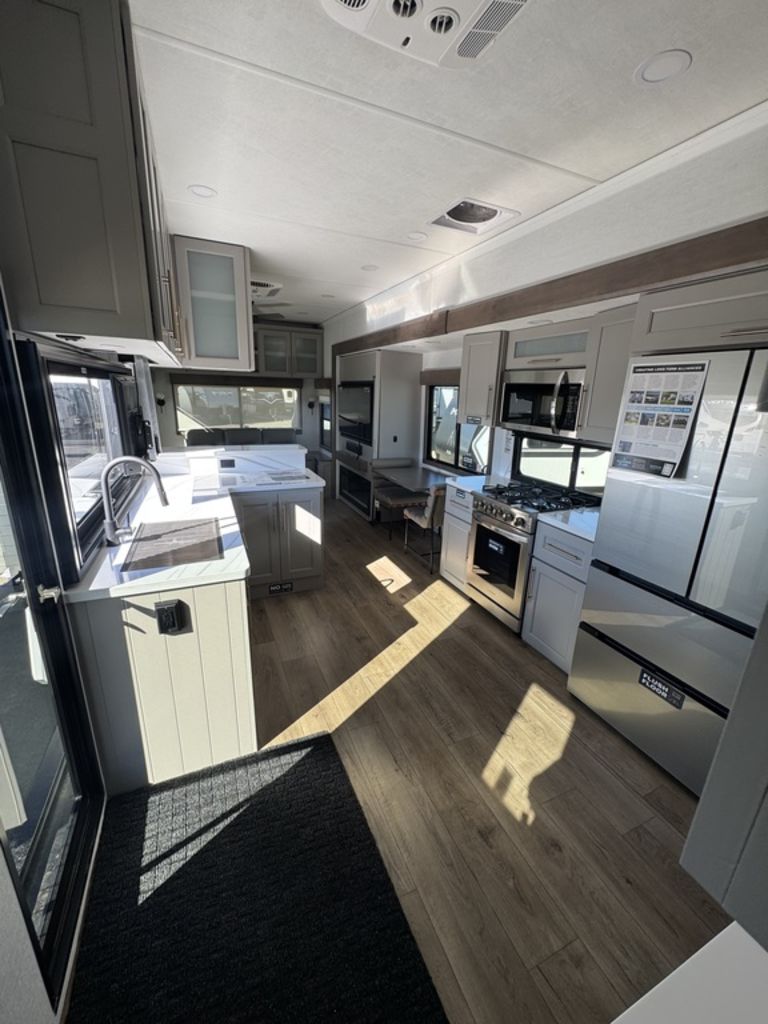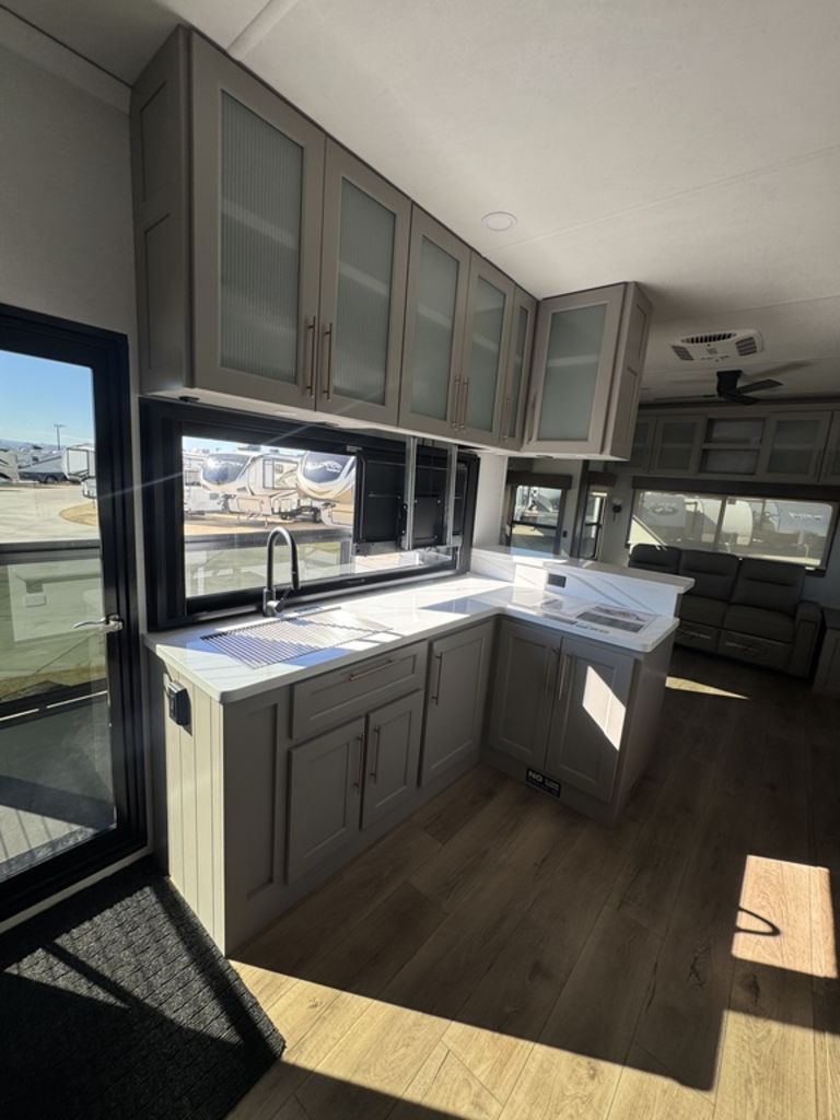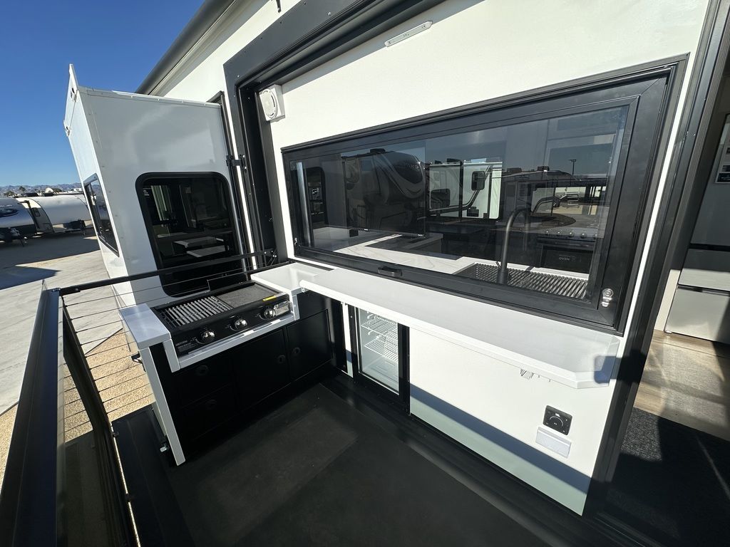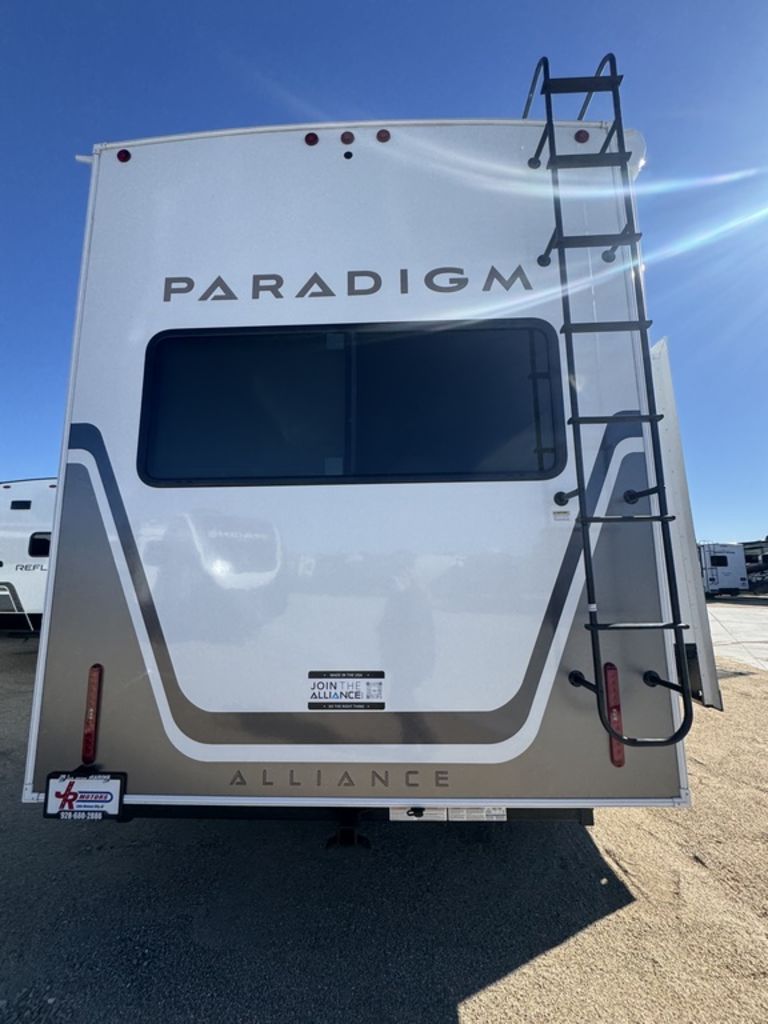 ***Welcome to JR Motors Mohave County's #1 RV dealership** You have to see this RV in person it's "So-Cool" this side patio design is absolutely awesome!! Get ready to experience the great outdoors like never before with the newest addition to the Paradigm lineup: The incredible SIDE PATIO fifth wheel! The Paradigm 388SP is a game-changer, featuring an expansive side patio complete with a counter extension, mini fridge, pop-down TV, and a pull-out grill, making it the ultimate spot for outdoor entertaining and relaxation. Step inside to discover a luxurious and functional interior. The kitchen boasts residential appliances, a 12-volt refrigerator, a large pantry, and a beautiful picture window with built-in blinds. The rear living area is perfect for unwinding, with a turntable dinette and a large entertainment center. The front bedroom offers a king-size bed and a redesigned closet with space for a stackable washer/dryer. With the Paradigm 388SP, you'll have everything you need to create unforgettable memories on the road. Stop by or give us a call today 928-680-2886 Open 7-days a week!
