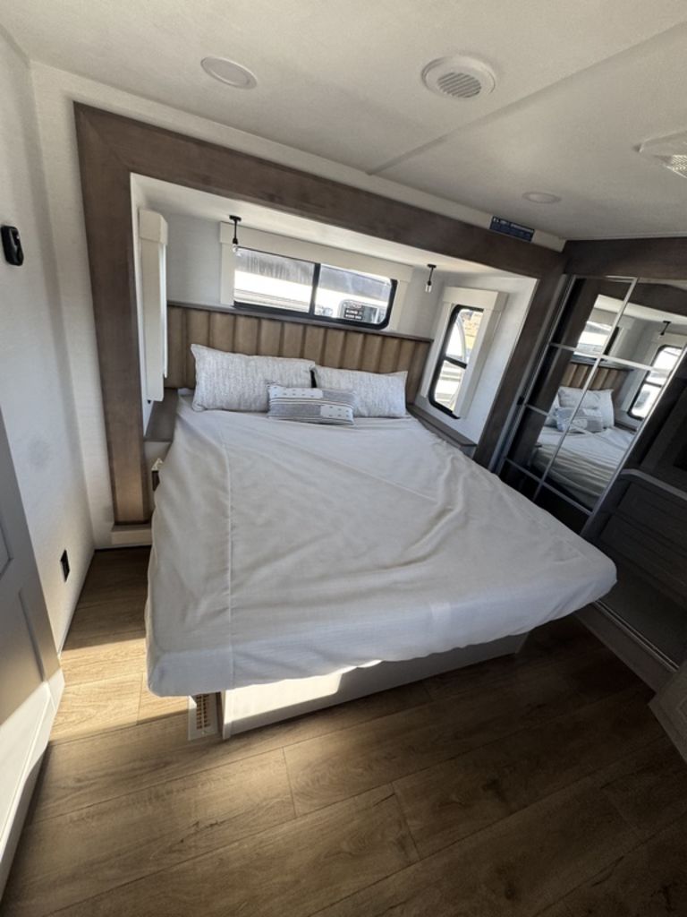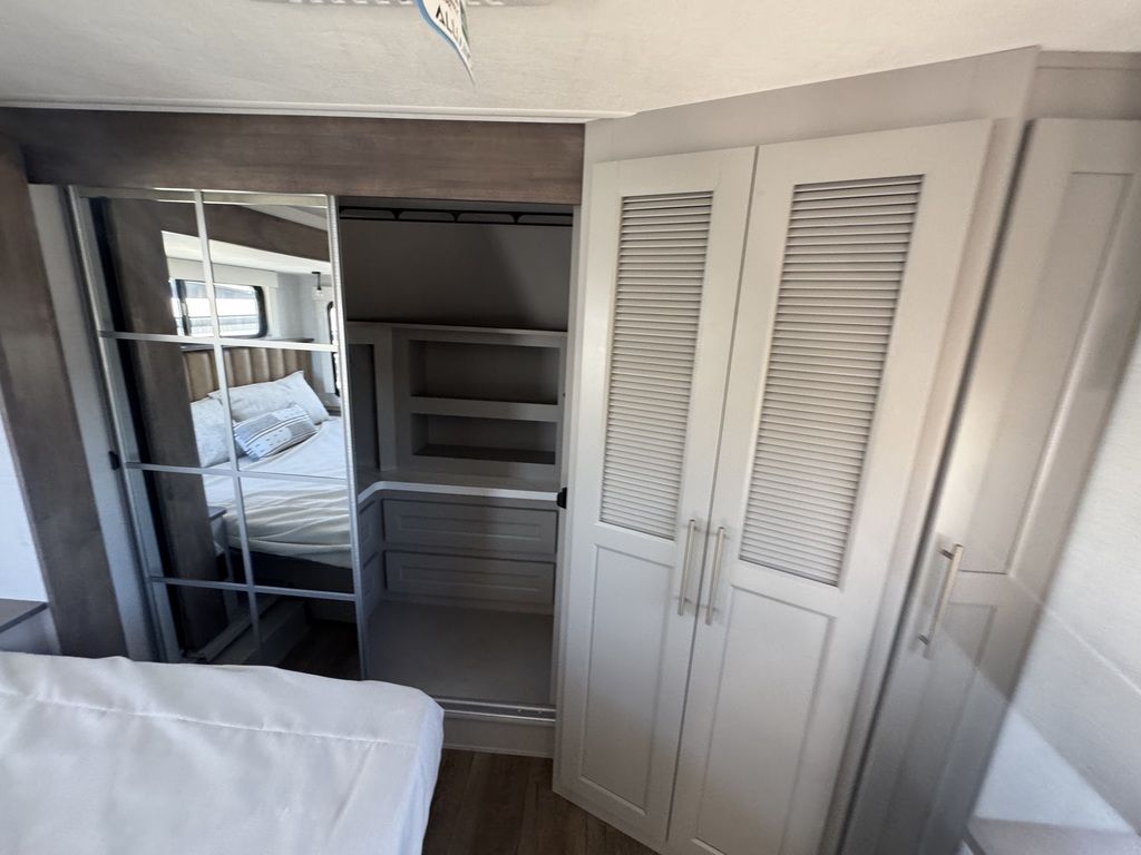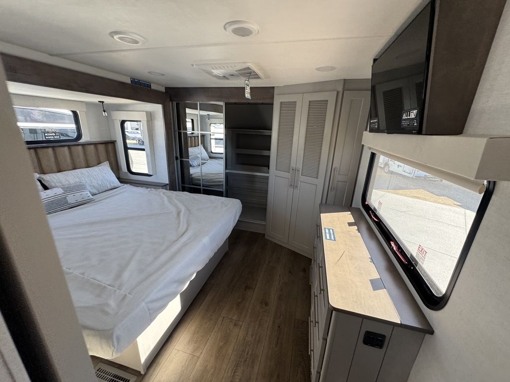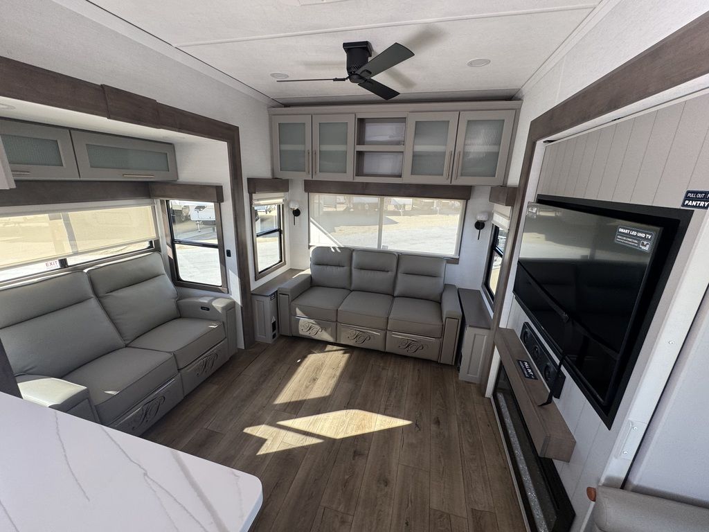 ***Welcome to JR Motors Mohave County's #1 RV dealership** You have to see this RV in person it's "So-Cool" this side patio design is absolutely awesome!! Get ready to experience the great outdoors like never before with the newest addition to the Paradigm lineup: The incredible SIDE PATIO fifth wheel! The Paradigm 388SP is a game-changer, featuring an expansive side patio complete with a counter extension, mini fridge, pop-down TV, and a pull-out grill, making it the ultimate spot for outdoor entertaining and relaxation. Step inside to discover a luxurious and functional interior. The kitchen boasts residential appliances, a 12-volt refrigerator, a large pantry, and a beautiful picture window with built-in blinds. The rear living area is perfect for unwinding, with a turntable dinette and a large entertainment center. The front bedroom offers a king-size bed and a redesigned closet with space for a stackable washer/dryer. With the Paradigm 388SP, you'll have everything you need to create unforgettable memories on the road. Stop by or give us a call today 928-680-2886 Open 7-days a week!