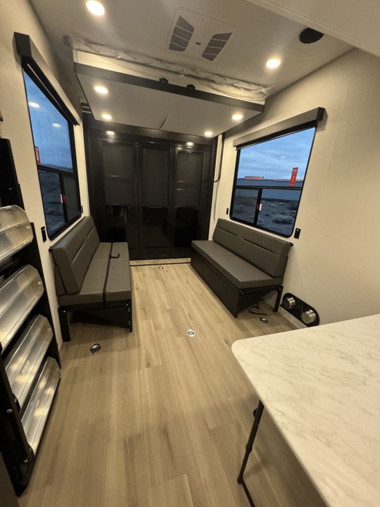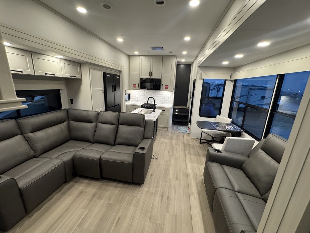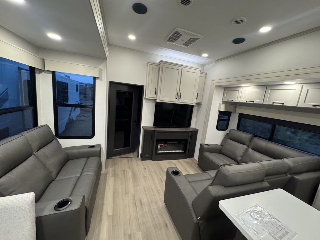**Welcome to JR Motors Mohave County's #1 RV dealership** Load up your toys and hit the road in luxury with the Momentum G-Class 394G! The 15-foot garage gives you plenty of space for ATVs, bikes, or side-by-sides, complete with 2,500 lb. tie-downs, Ram-Air vents, and rear-ramp loading lights. Once you unload, the rear aluminum deck system with power awning transforms your garage into an outdoor patio — perfect for relaxing after a long day of adventure. Inside, the Momentum G-Class 394G combines residential comfort and modern tech with Artisan décor, solid-surface countertops, LED Smart TV, fireplace, and Rockford Fosgate premium audio system. The 15 cu. ft. 12V refrigerator, microwave, and 3-burner range make meal prep easy, while the OmniConnect Gen 3 Starlink/WiFi prep and dual solar panels (660W total) keep you connected and powered off-grid. The front master suite features a king bed, solid bedroom door, and direct access to a spacious full bath with a walk-in shower and skylight. Dual entry doors, a 50A power system with inverter prep, and the electric auto-leveling system make setup and travel effortless. This toy hauler is built for four-season adventure with the G-Class Insulation Package, heated and enclosed underbelly, and double-insulated roof and front cap. The MORryde CRE3000 suspension, 17.5” H-rated tires, and triple 8,000 lb. axles with ABS brakes deliver a confident, smooth tow wherever you roam. JR Motors we're located in beautiful Lake Havasu City, AZ, we currently have a huge selection of toy-haulers along with fifth-wheels, travel trailers and more all in stock and ready for immediate delivery so you'll be camping by the weekend! "let's go camping" JR Motors 928-680-2886 Open 7-days a week!