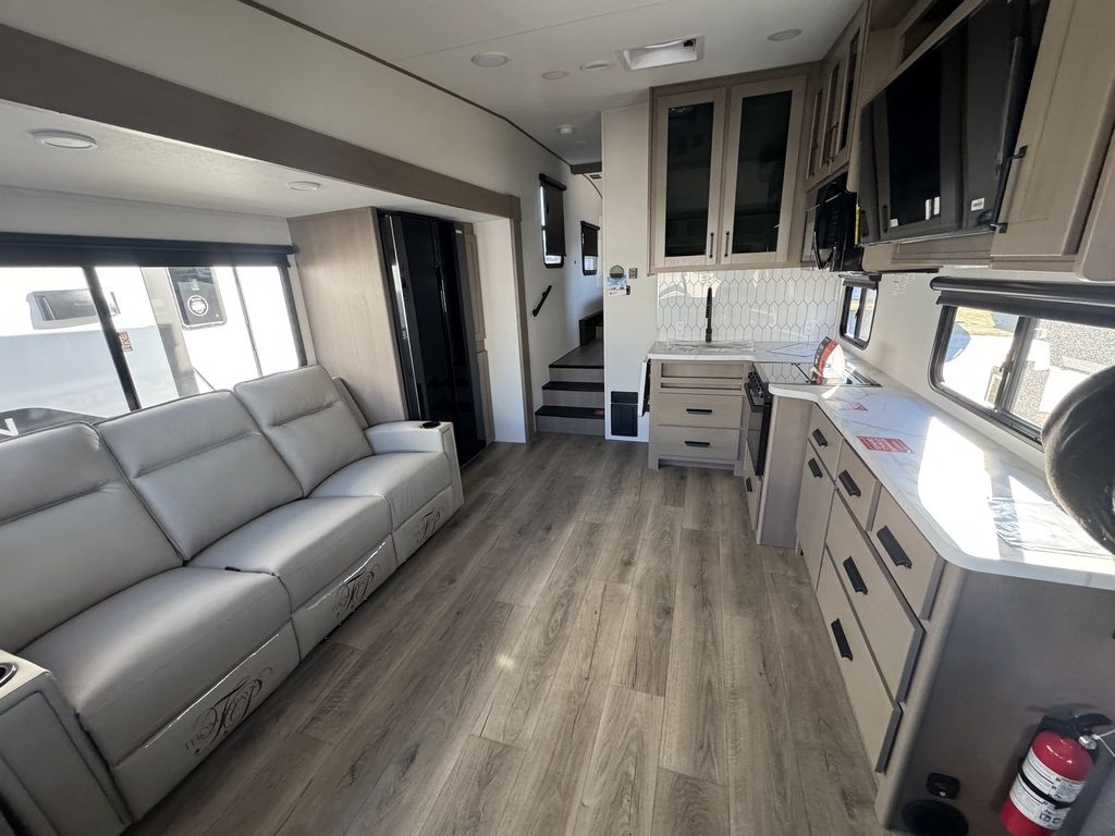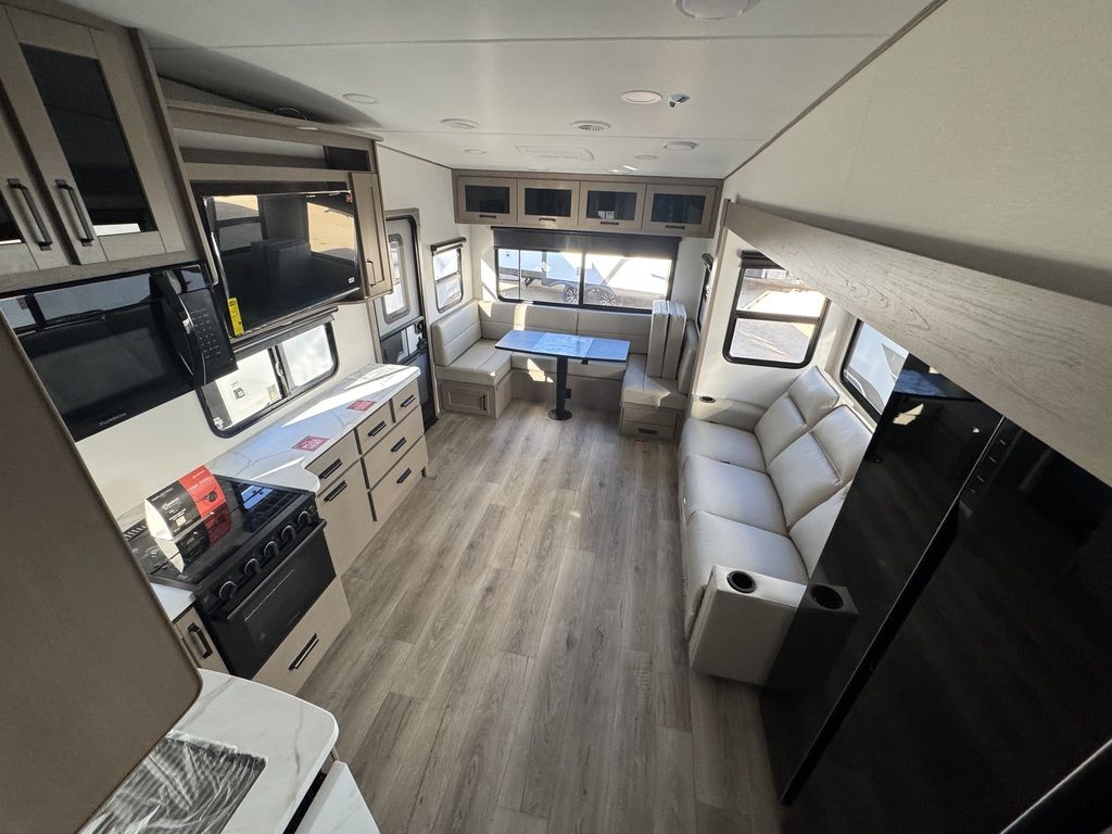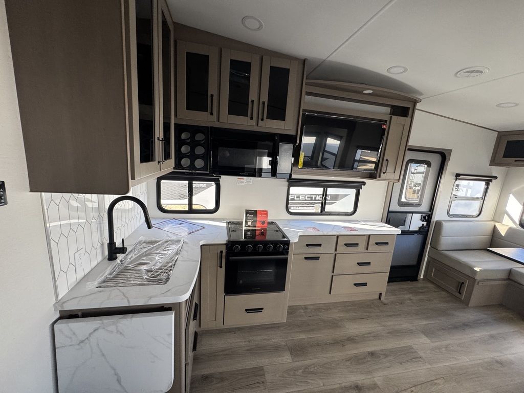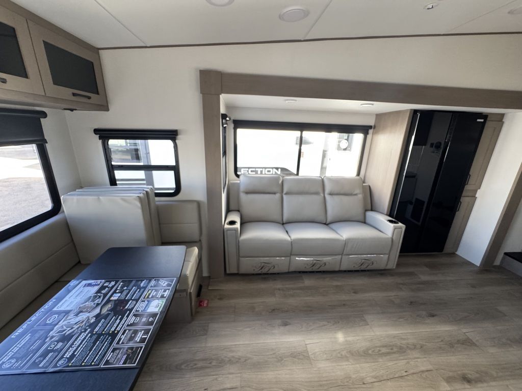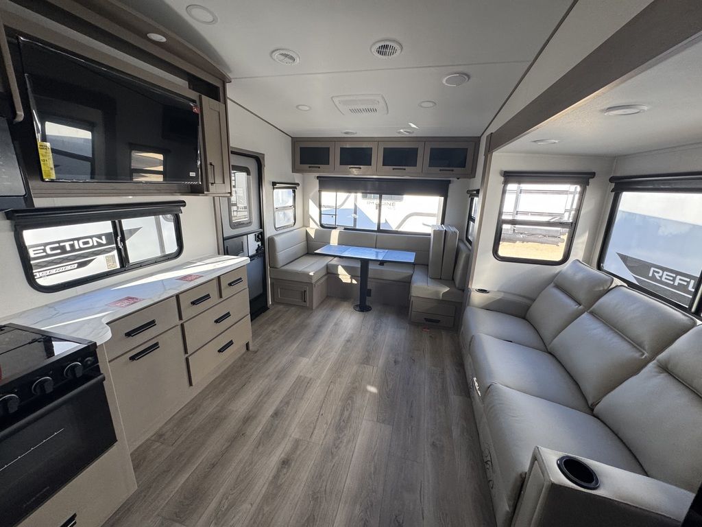 The Reflection 150 Series is designed with the modern traveler in mind. With ample living space, a large kitchen, and a comfortable bedroom, this fifth wheel provides all the comforts of home while on the road. The interior is beautifully designed with high-quality furnishings and finishes, making it a true home away from home. For those who demand the best in luxury and convenience, the Reflection 150 Series Half-ton towable Fifth Wheel is the perfect choice.