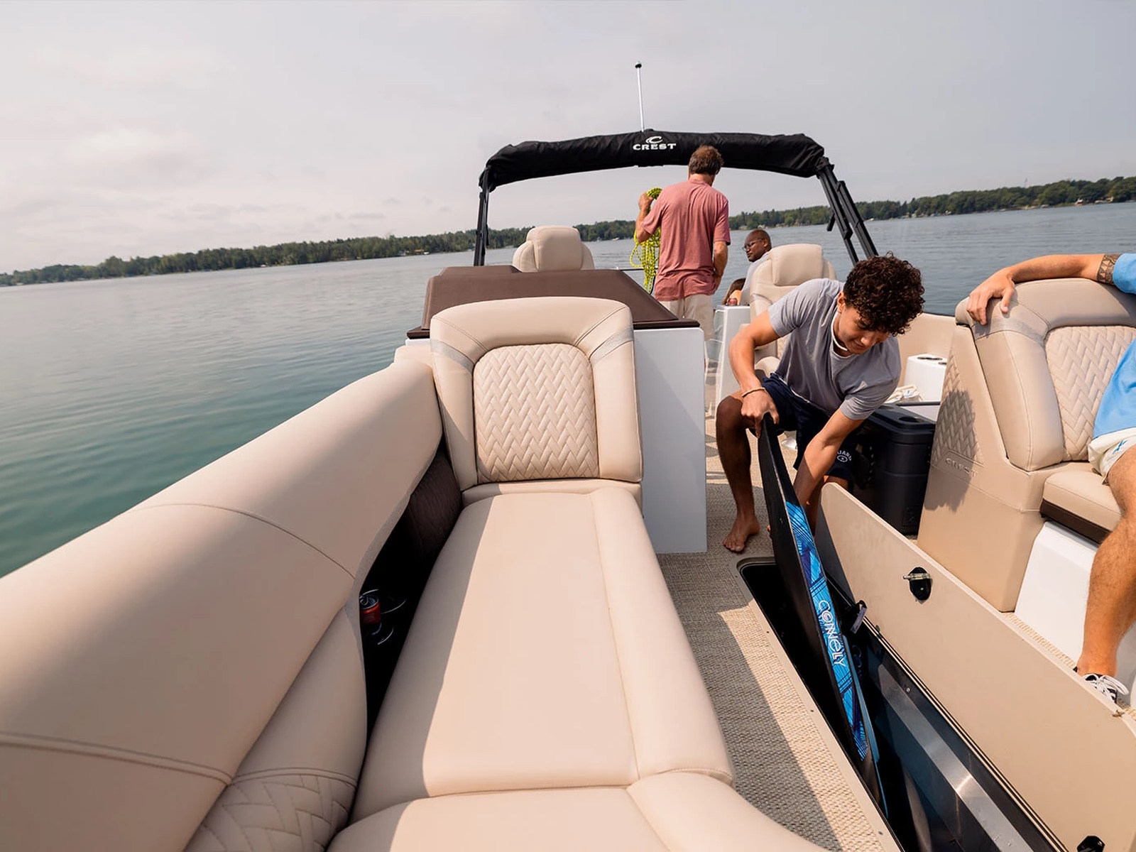 Experience the pinnacle of premium boating with the Caribbean Platinum. Combining timeless styling and premium performance, this tritoon boat offers an array of premium upgrades, features, and amenities designed to keep you fully immersed in the present. Upgrade your experience with our exclusive accessory package, featuring holders for your flag and GoPro. Delight in the elegance of the cladded arch with gas assist, while staying cool and protected under the power bimini for bow shade. Enjoy crystal-clear sound with the premium Klipsch audio system. The Caribbean Platinum ensures you and your family can create unforgettable memories, surrounded by unparalleled comfort, style, and performance.