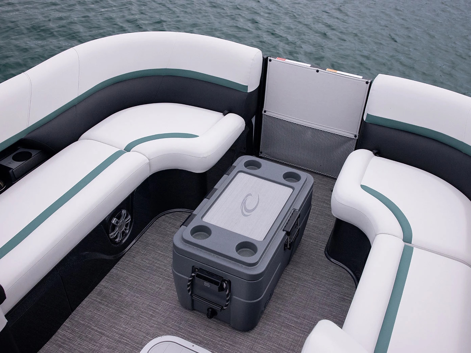 Escape the ordinary on the Caribbean RS. Introducing the newly-designed wakeboard arch with an integrated sport bimini for style and functionality. Capture the action behind the boat with the Ski Tow Extension Package that includes GoPro and flag holders. Premium audio upgrade options are available so you get the crystal-clear marine sound technology that keeps the crew going. Indulge in unparalleled comfort with the choice of SoftTouch and CoolFeel upholstery options, allowing you to design a seating oasis that reflects your unique style. The new rugged ultra-lightweight cooler, complete with a custom SeaDek pad, ensures your favorite beverages stay chilled and afloat. Escape the ordinary and design your extraordinary boating experience with the Caribbean RS.