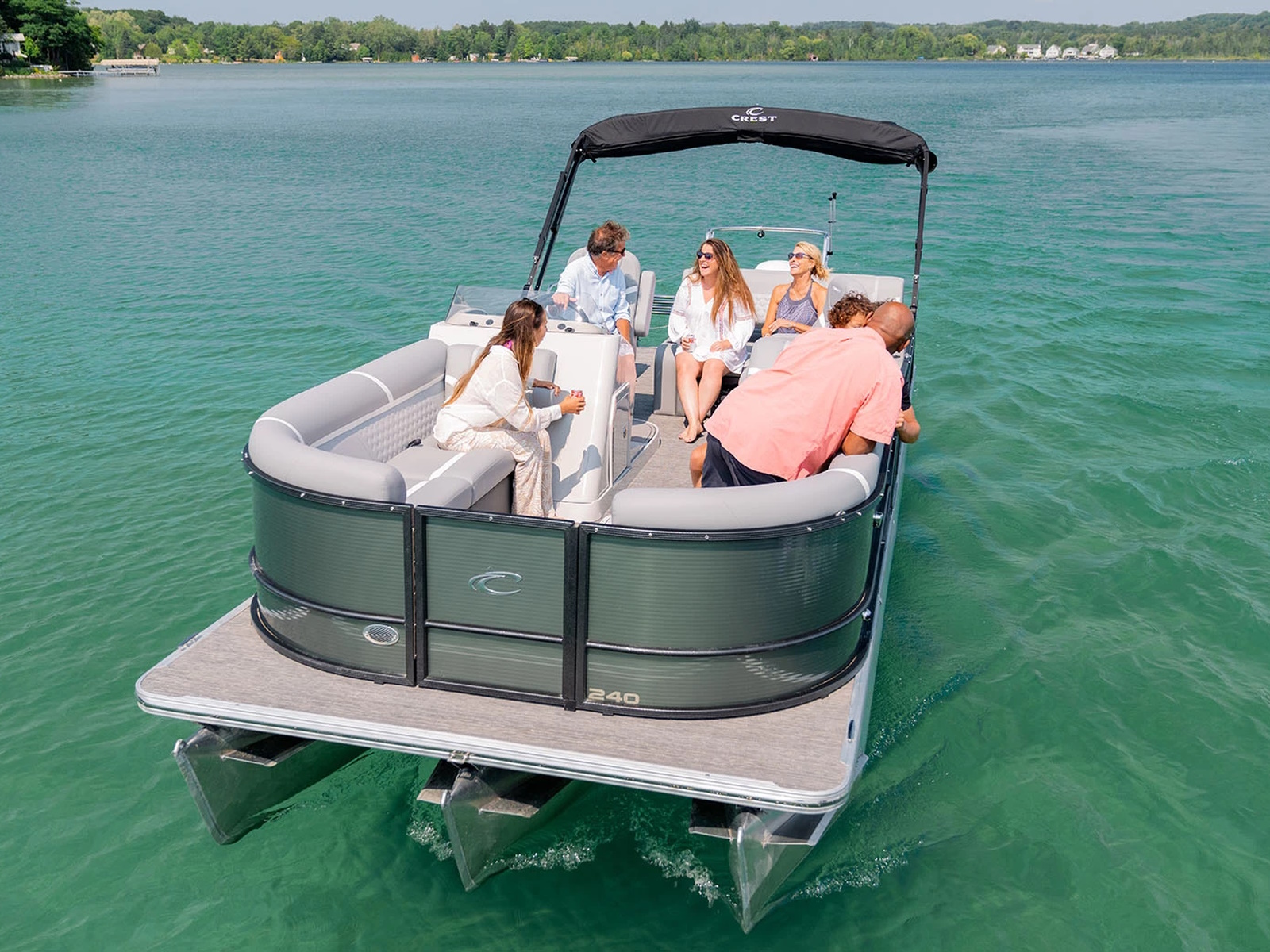 Designed with an abundance of amenities, the Classic Platinum delivers limitless possibilities to customize your ideal boat. Featuring a premium tow bar, higher horsepower options, and a larger fuel tank that can keep you out on the water longer, each boat delivers both performance and comfort. SoftTouch upholstery will keep your crew happy while quality tube, steering and power assist options help make the on-water experience even more enjoyable. Keeping the captain in mind, an elevated helm ensures docking and navigating your Crest with ease. This is your all-in-one solution for creating the best stories for every season.