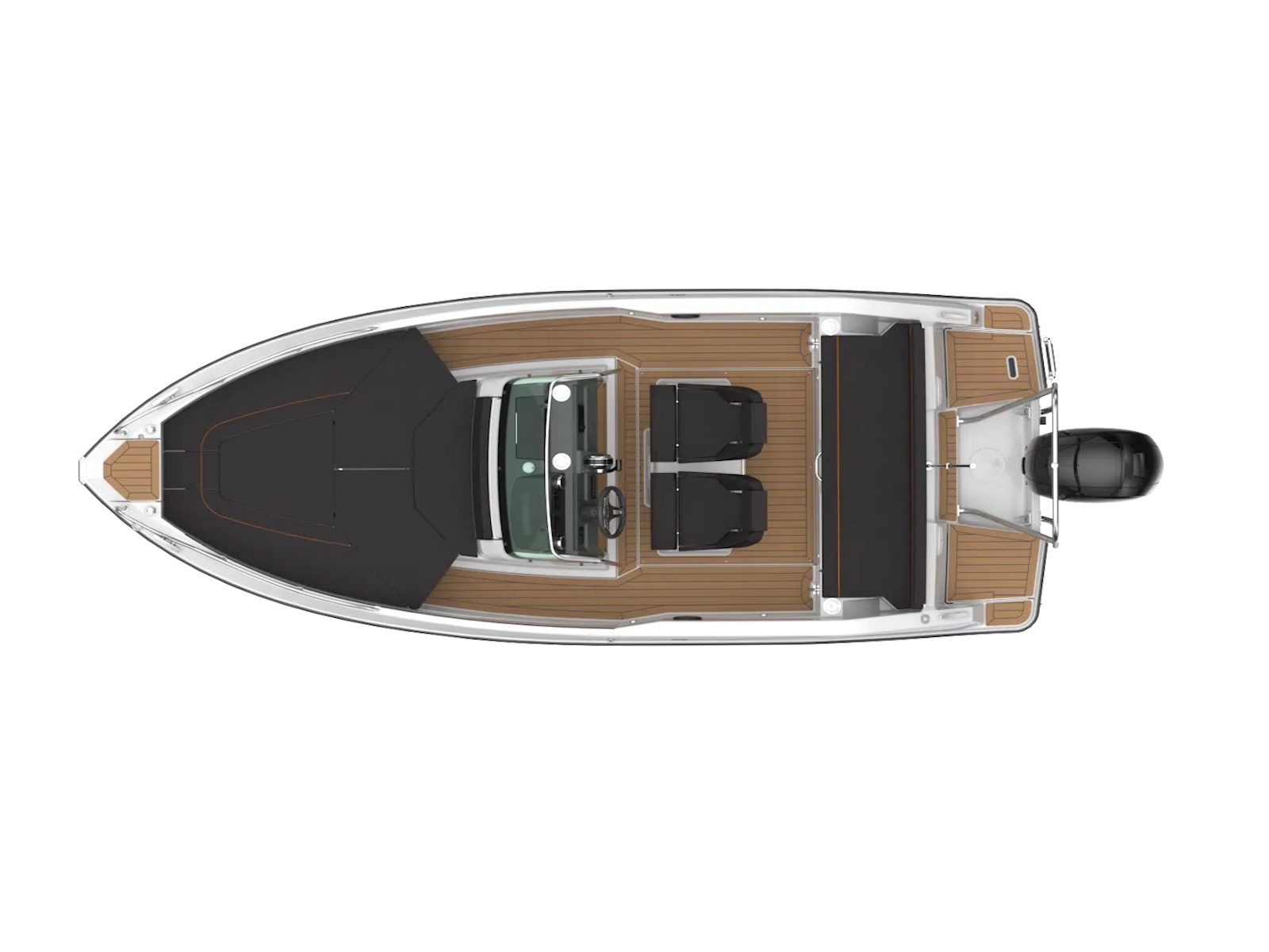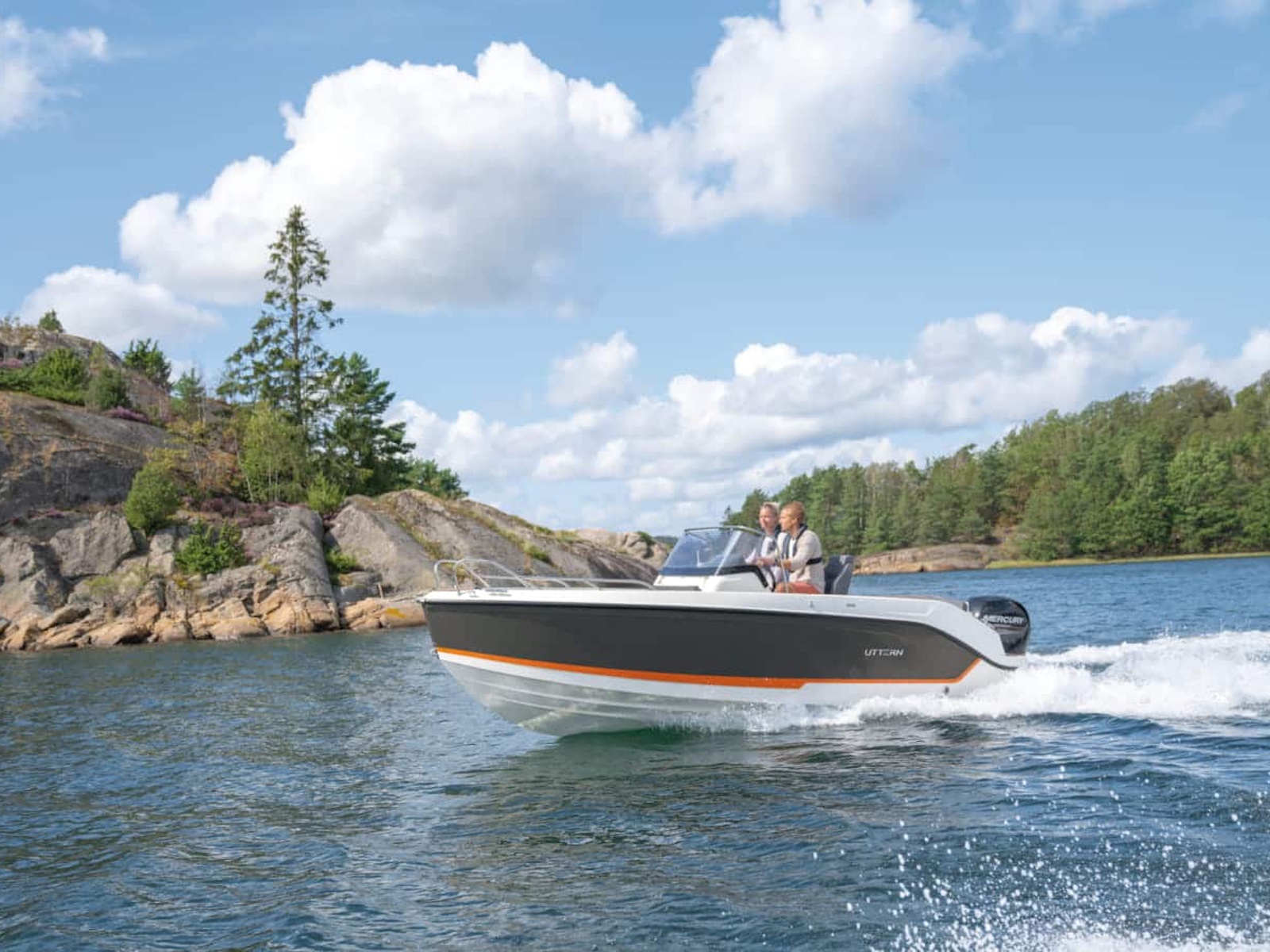 The Uttern S59 is a versatile day boat for both functional and fun trips. Its centre console provides ample space to tuck away luggage, groceries and other purchases, or a picnic to stay out on the water all day. With an overall length of 19 feet 1 inch, the S59 comfortably sits 6 people. This means all options are open: take your partner on a romantic trip, bring the kids along or invite a couple of friends. Do you want to go boating regardless of the weather? Add the optional sprayhood with enclosure to your configuration. It creates a fully enclosed cockpit area.