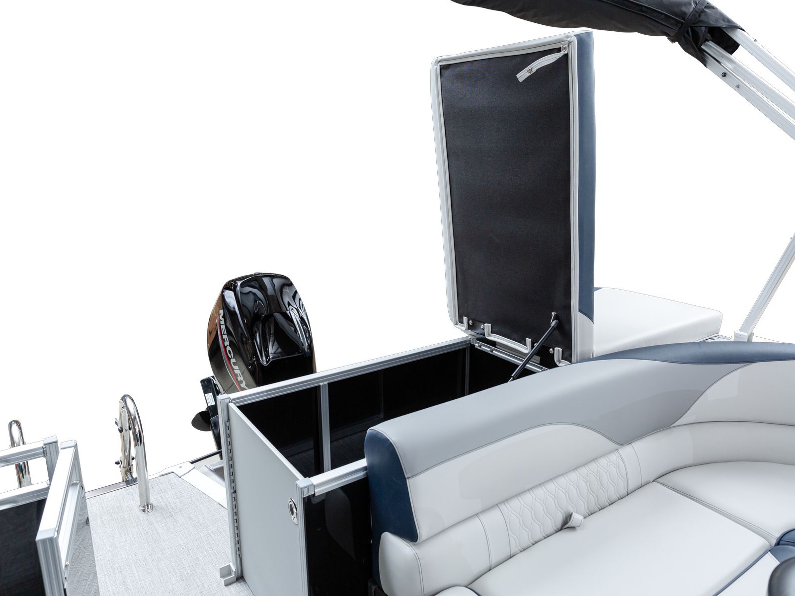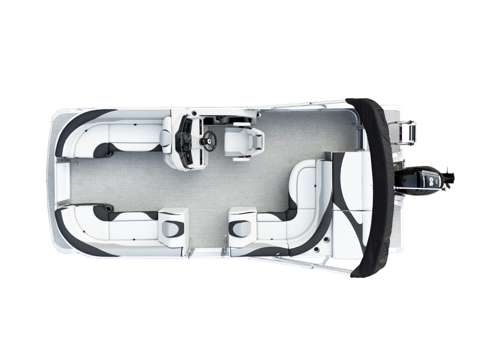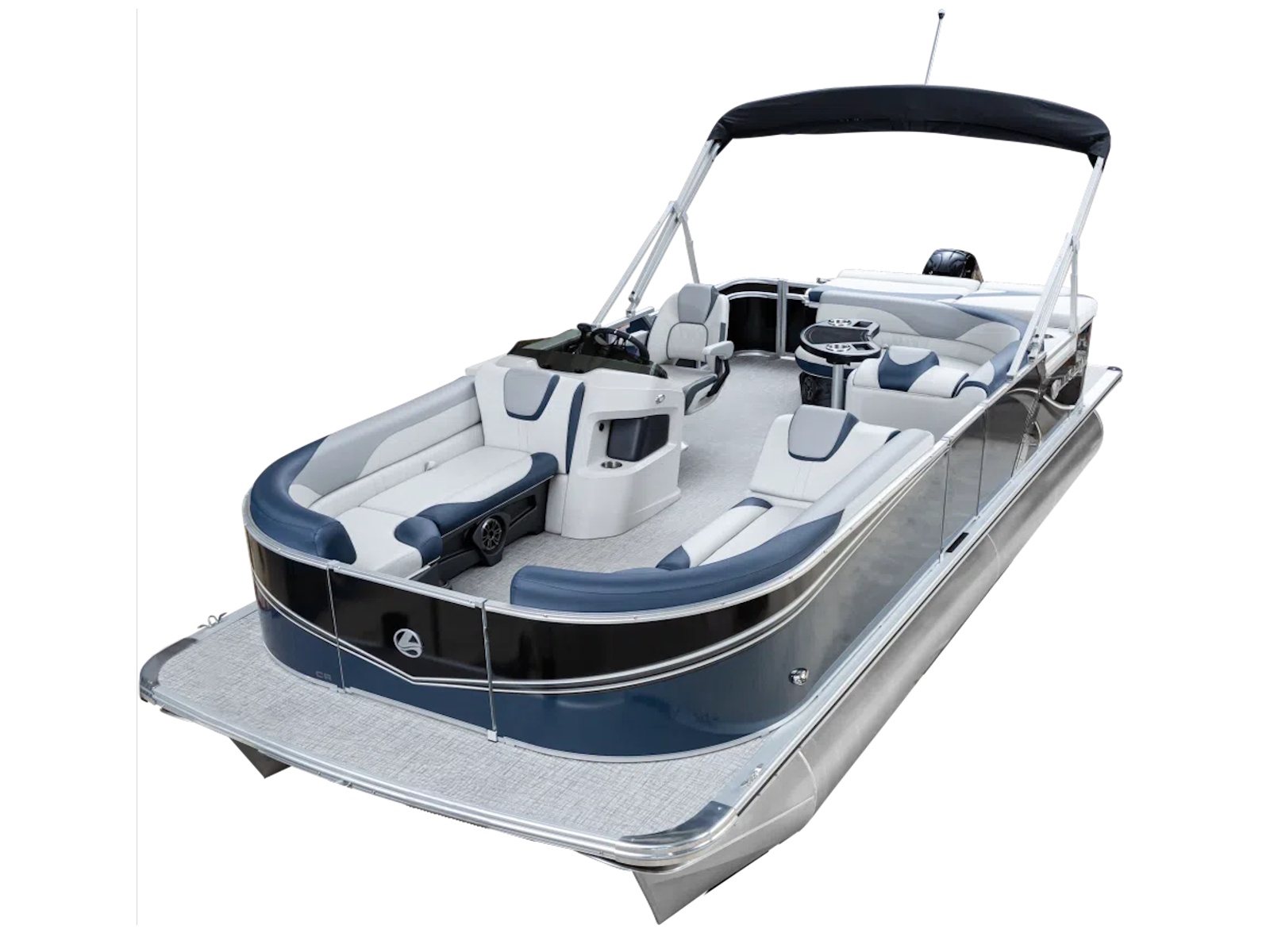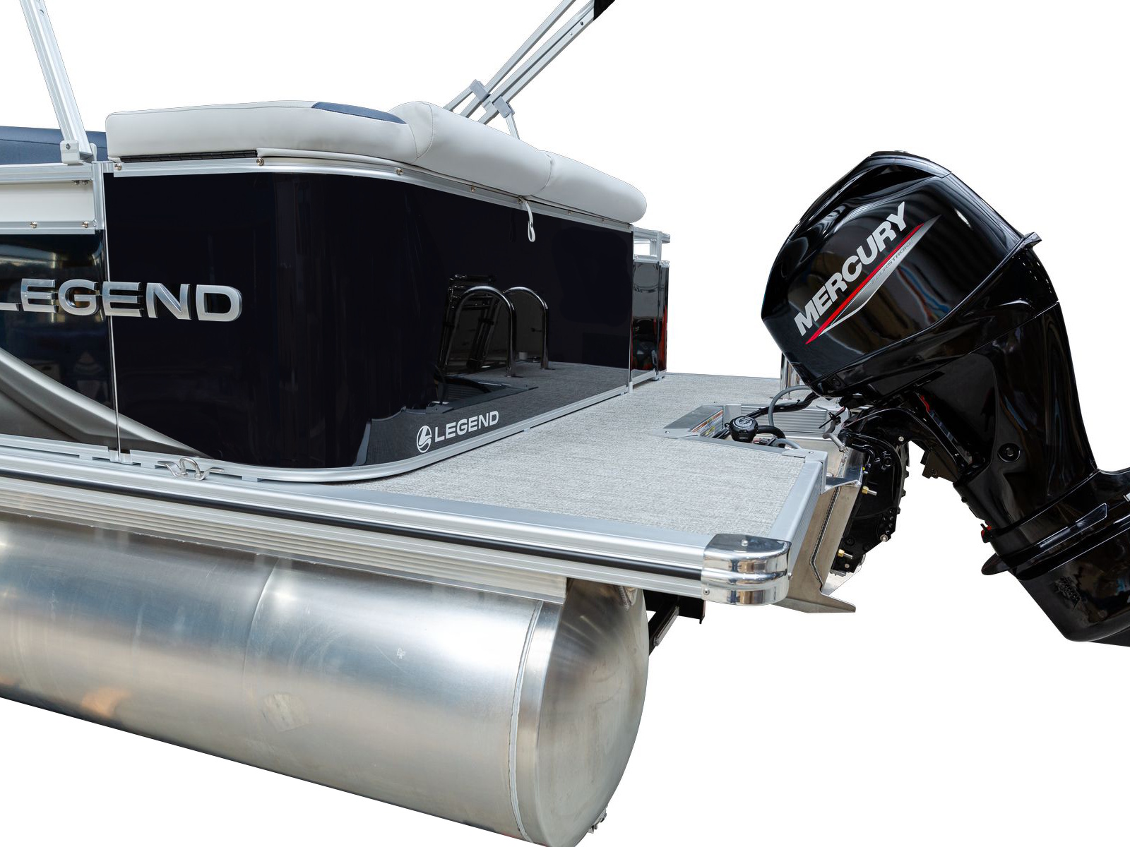 The pure pontoon experience: a stable deck and comfortable seating on top of high-performance tubes and a powerful Mercury motor.