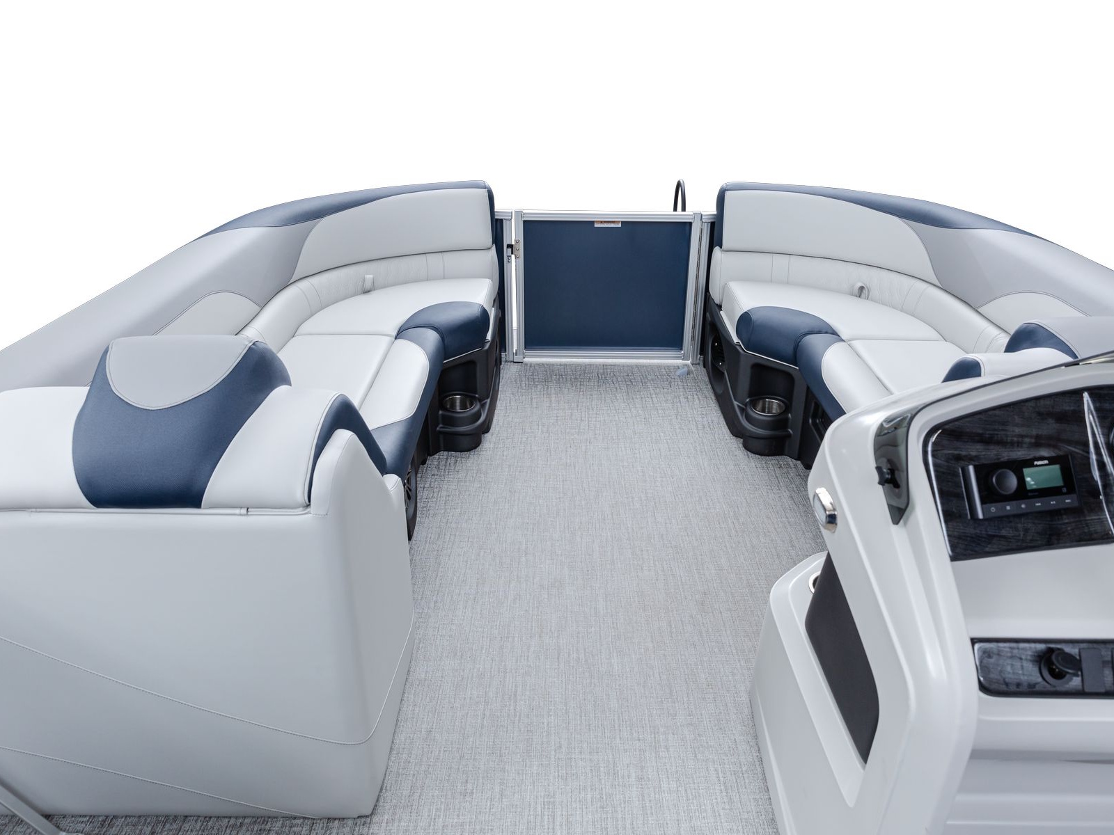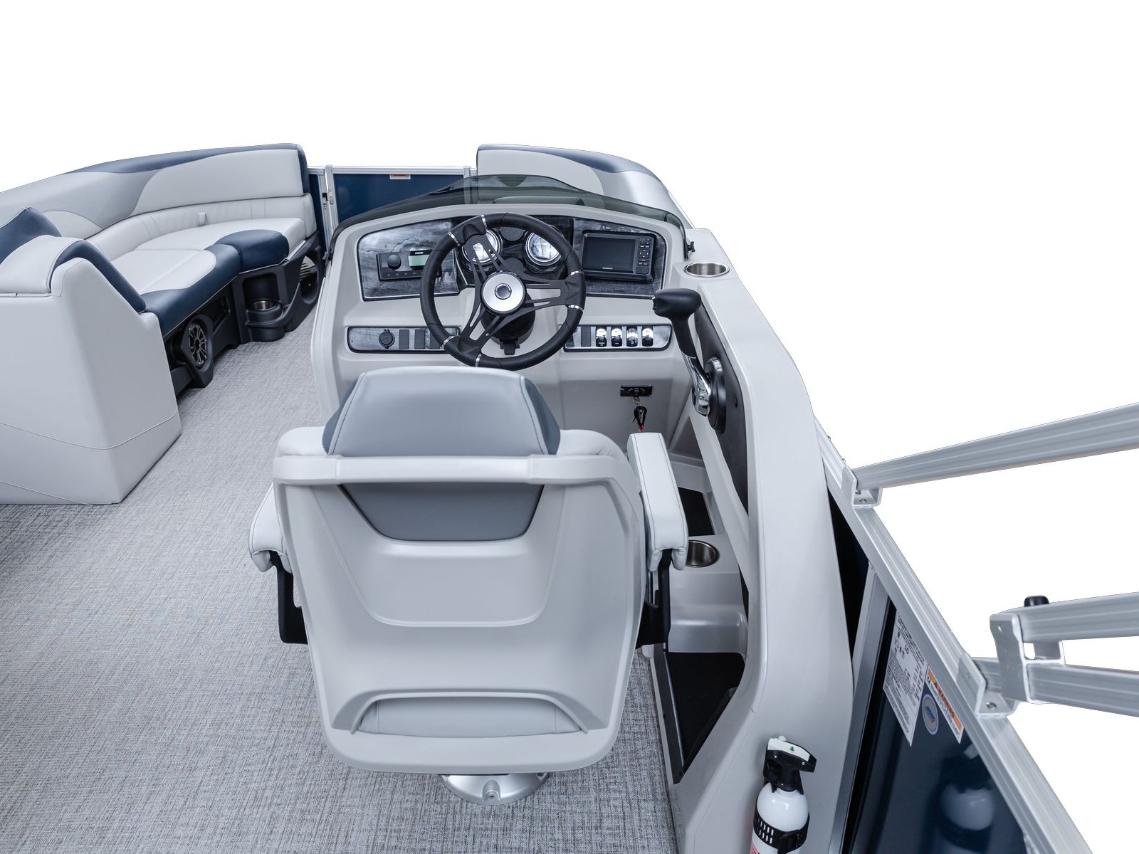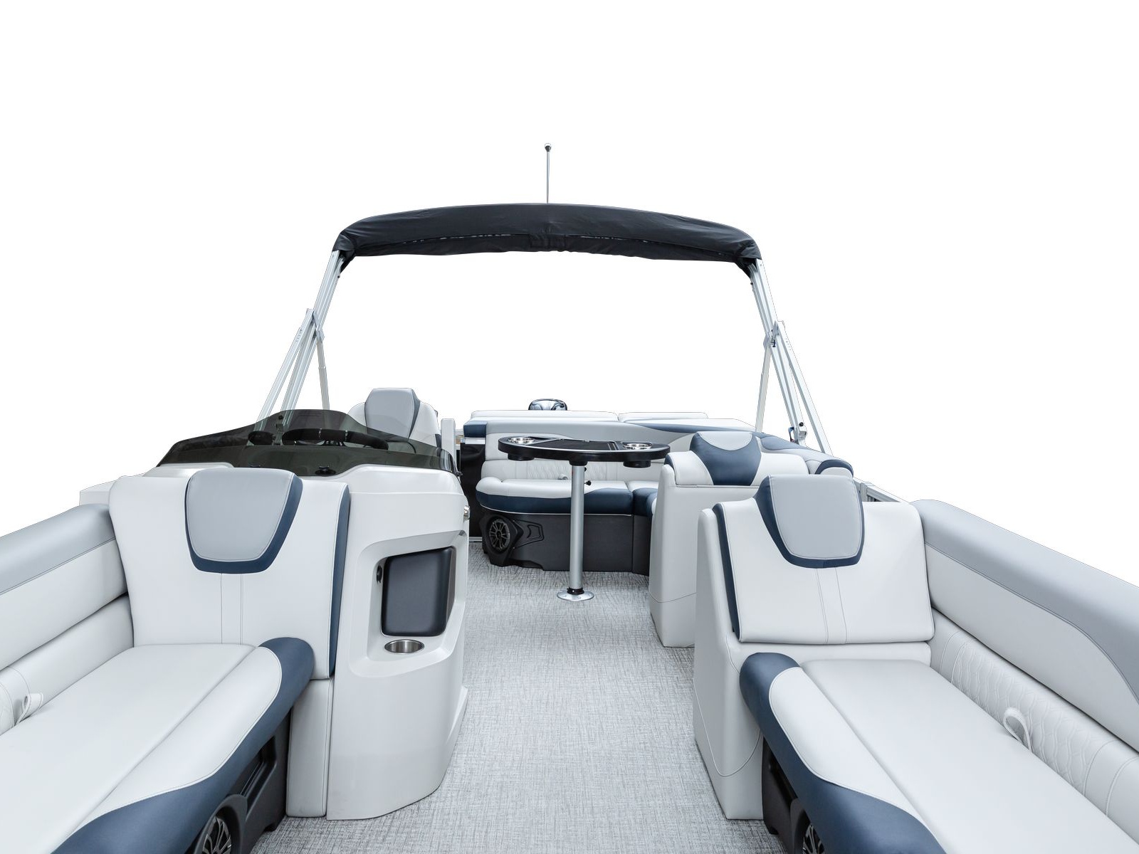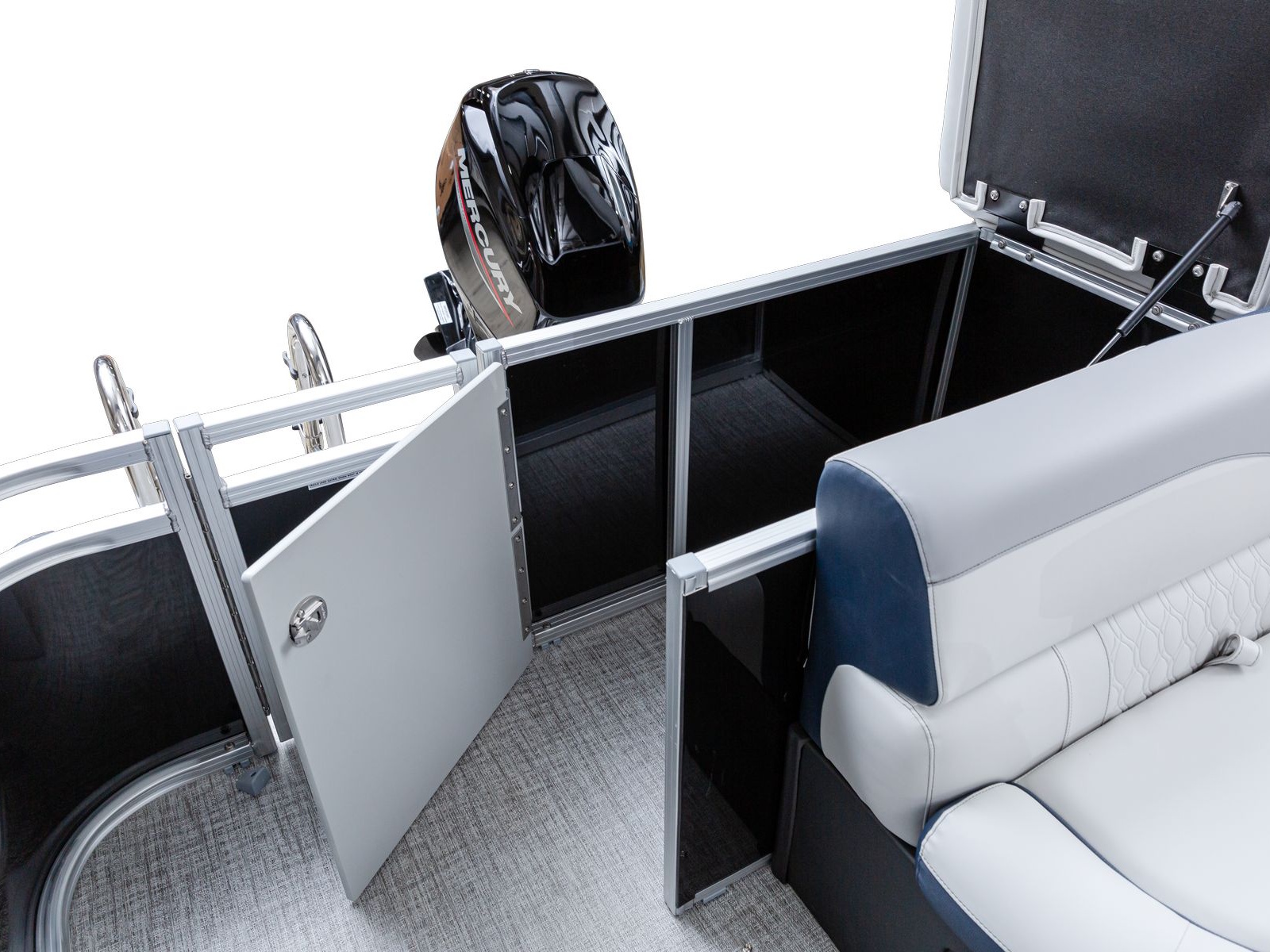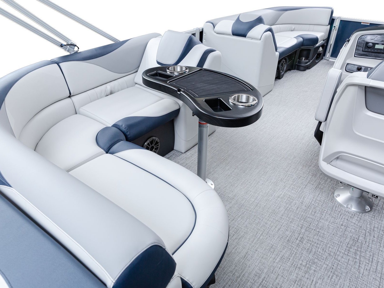 The pure pontoon experience: a stable deck and comfortable seating on top of high-performance tubes and a powerful Mercury motor.