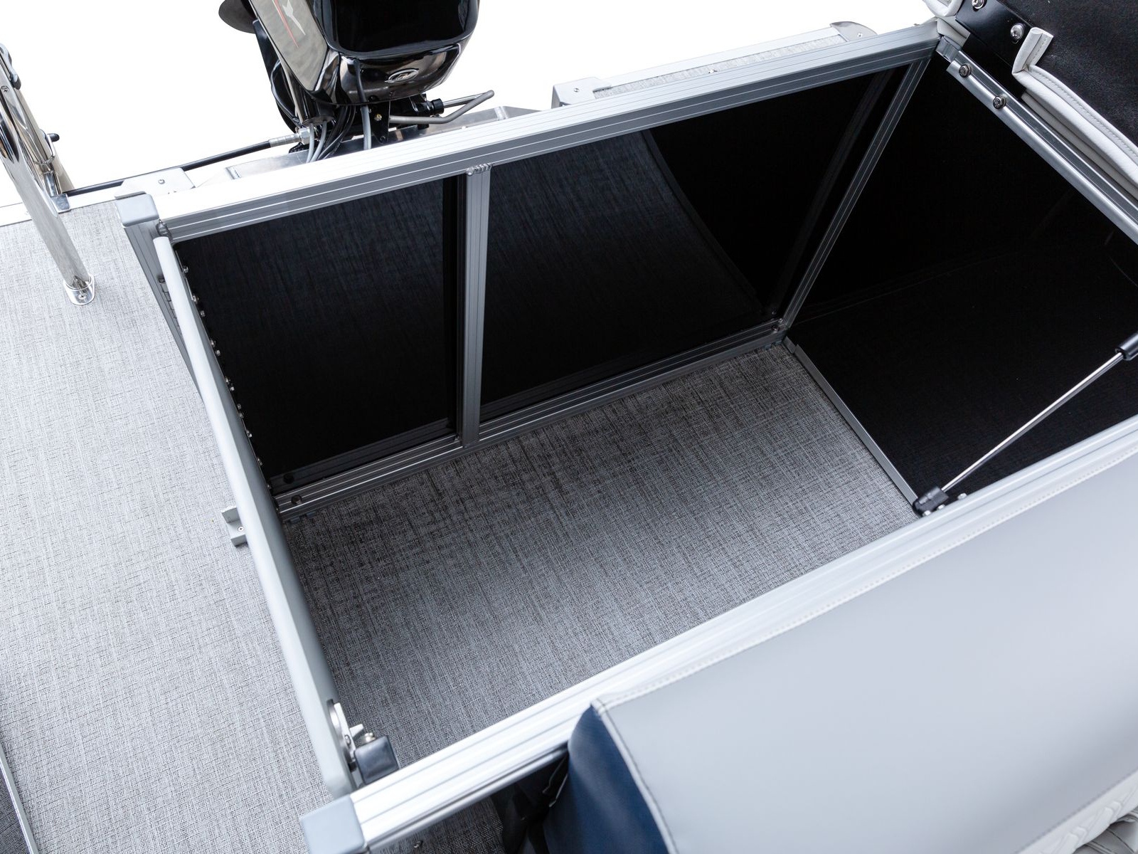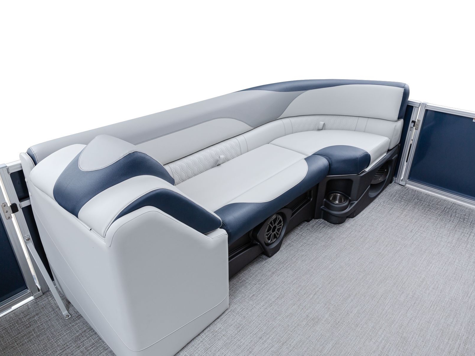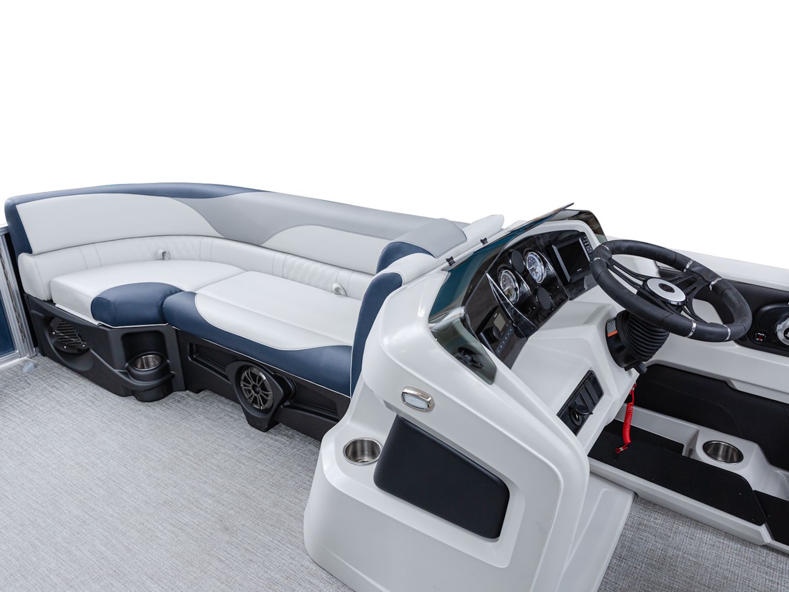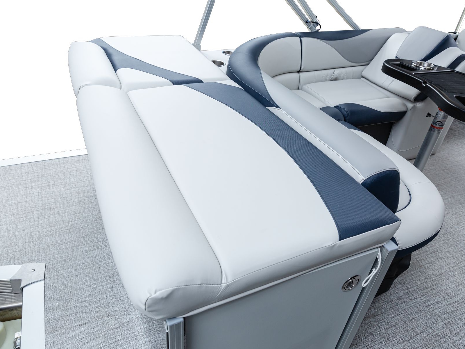 The pure pontoon experience: a stable deck and comfortable seating on top of high-performance tubes and a powerful Mercury motor.