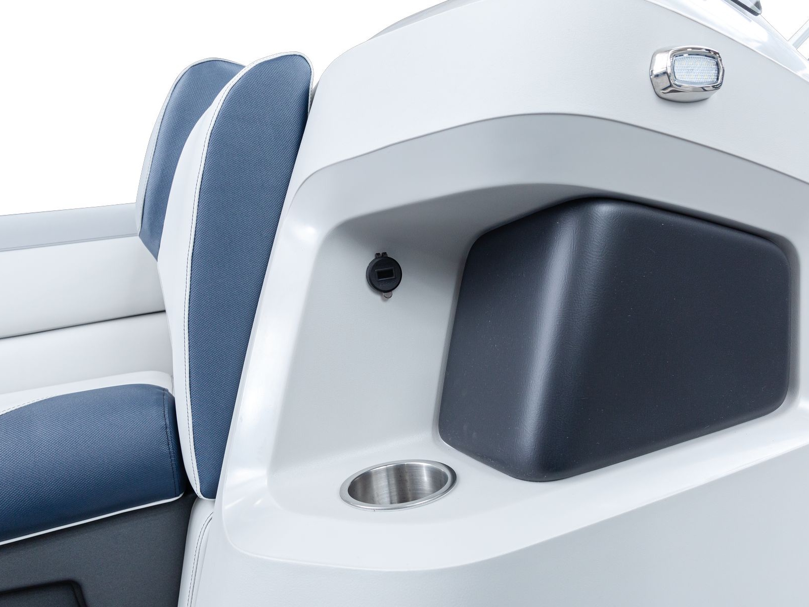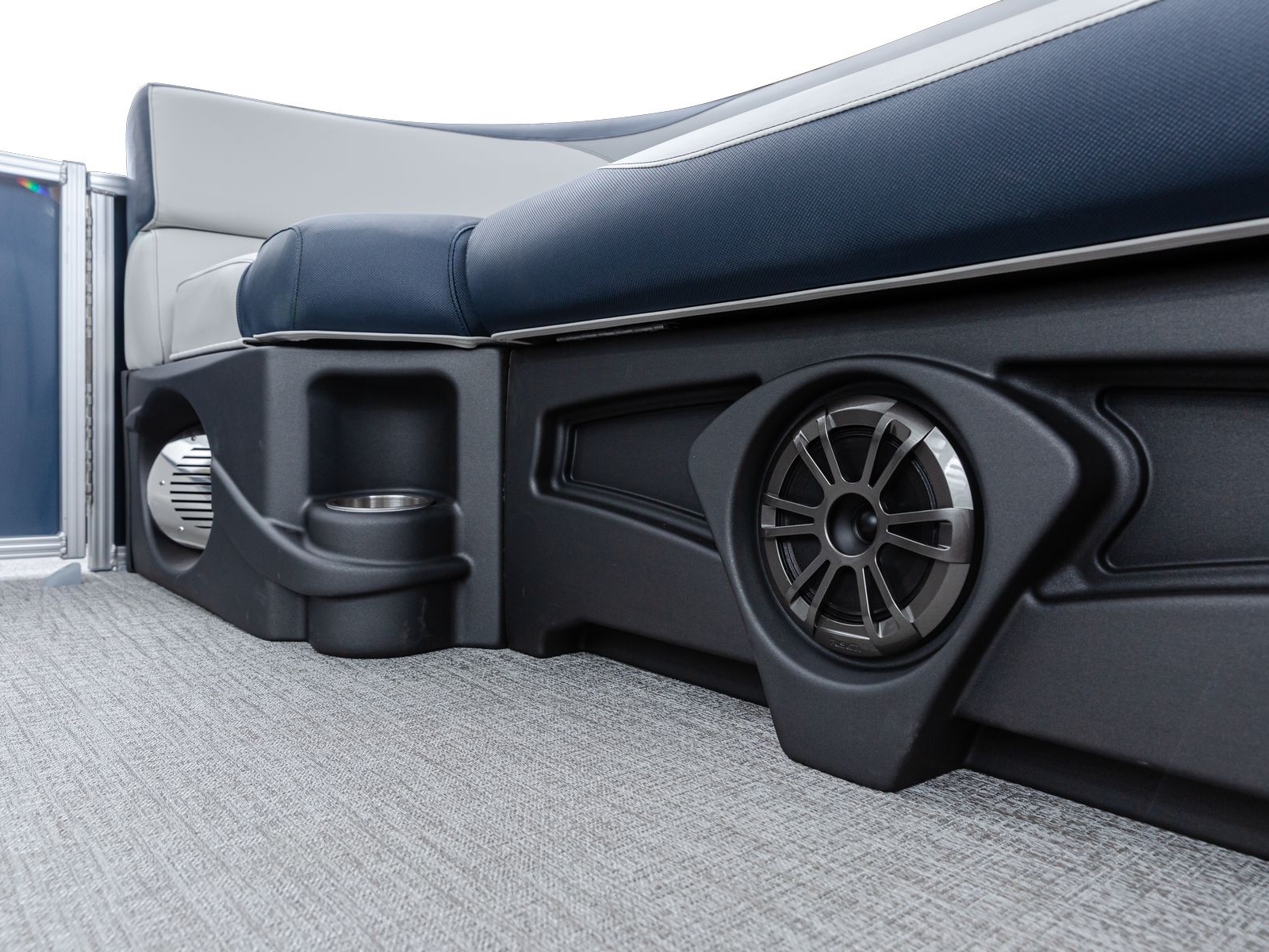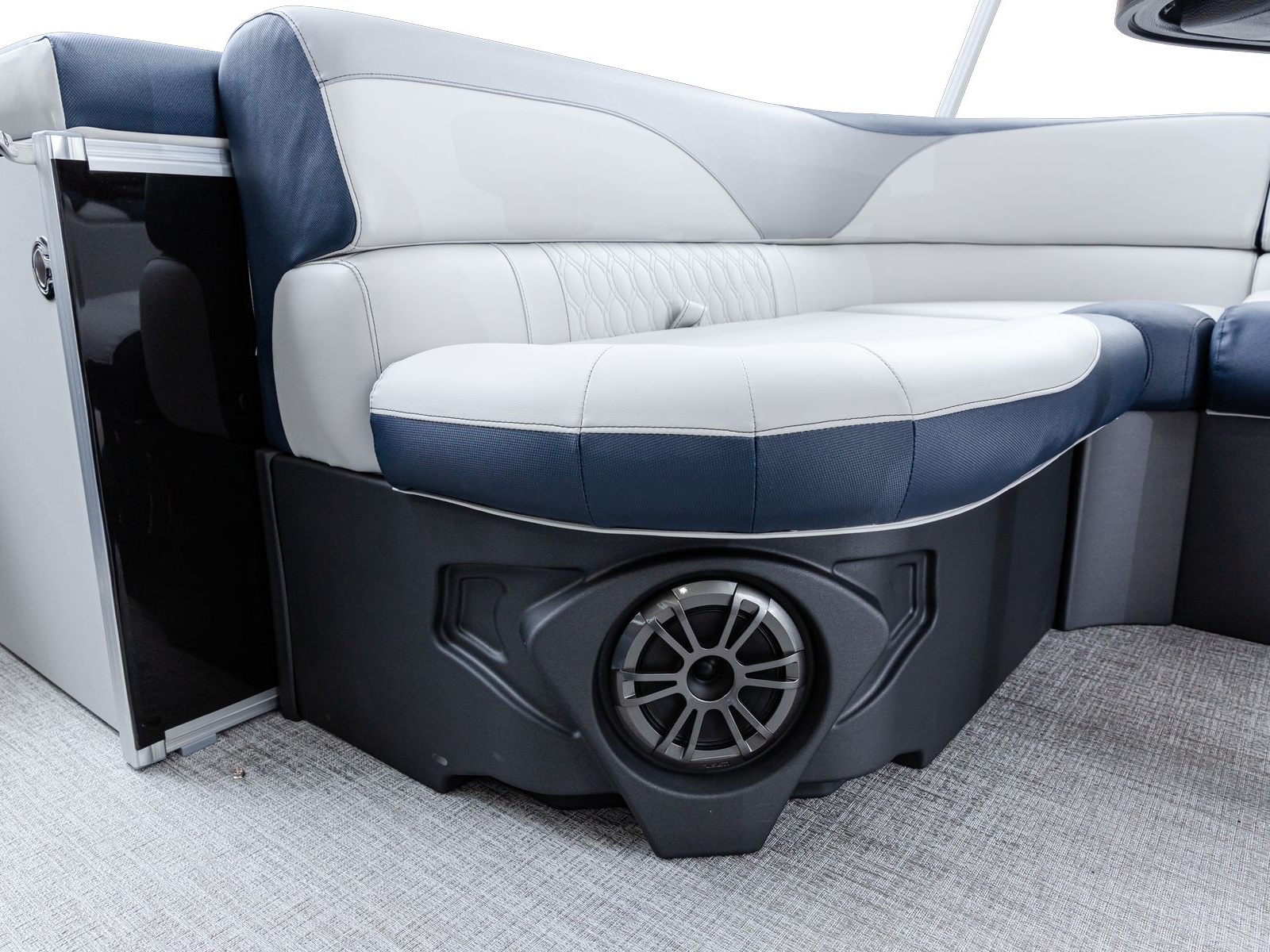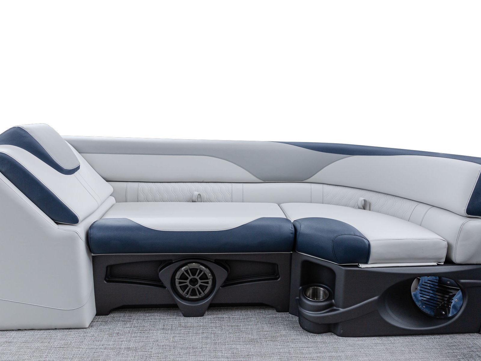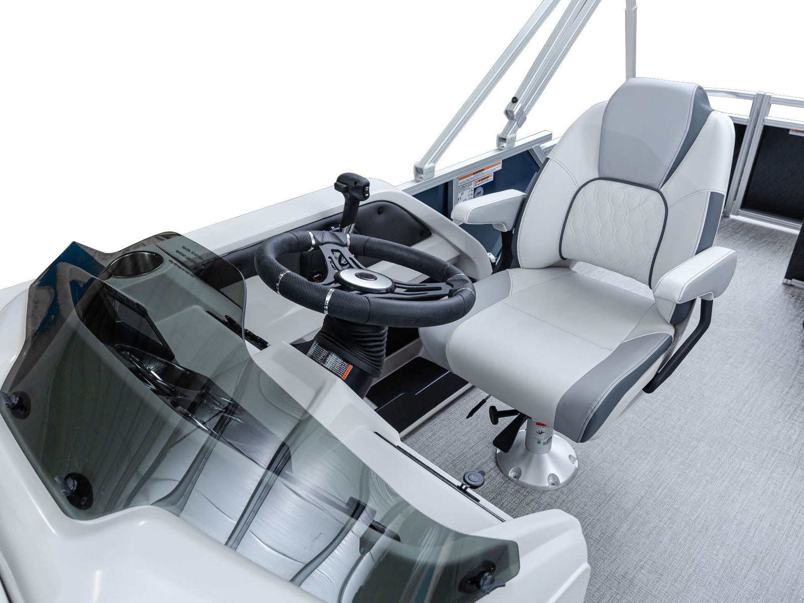 The pure pontoon experience: a stable deck and comfortable seating on top of high-performance tubes and a powerful Mercury motor.