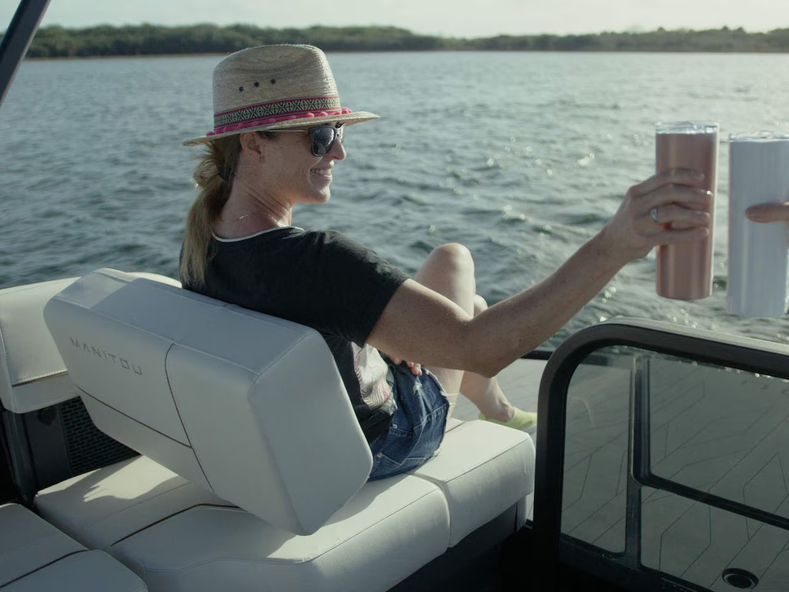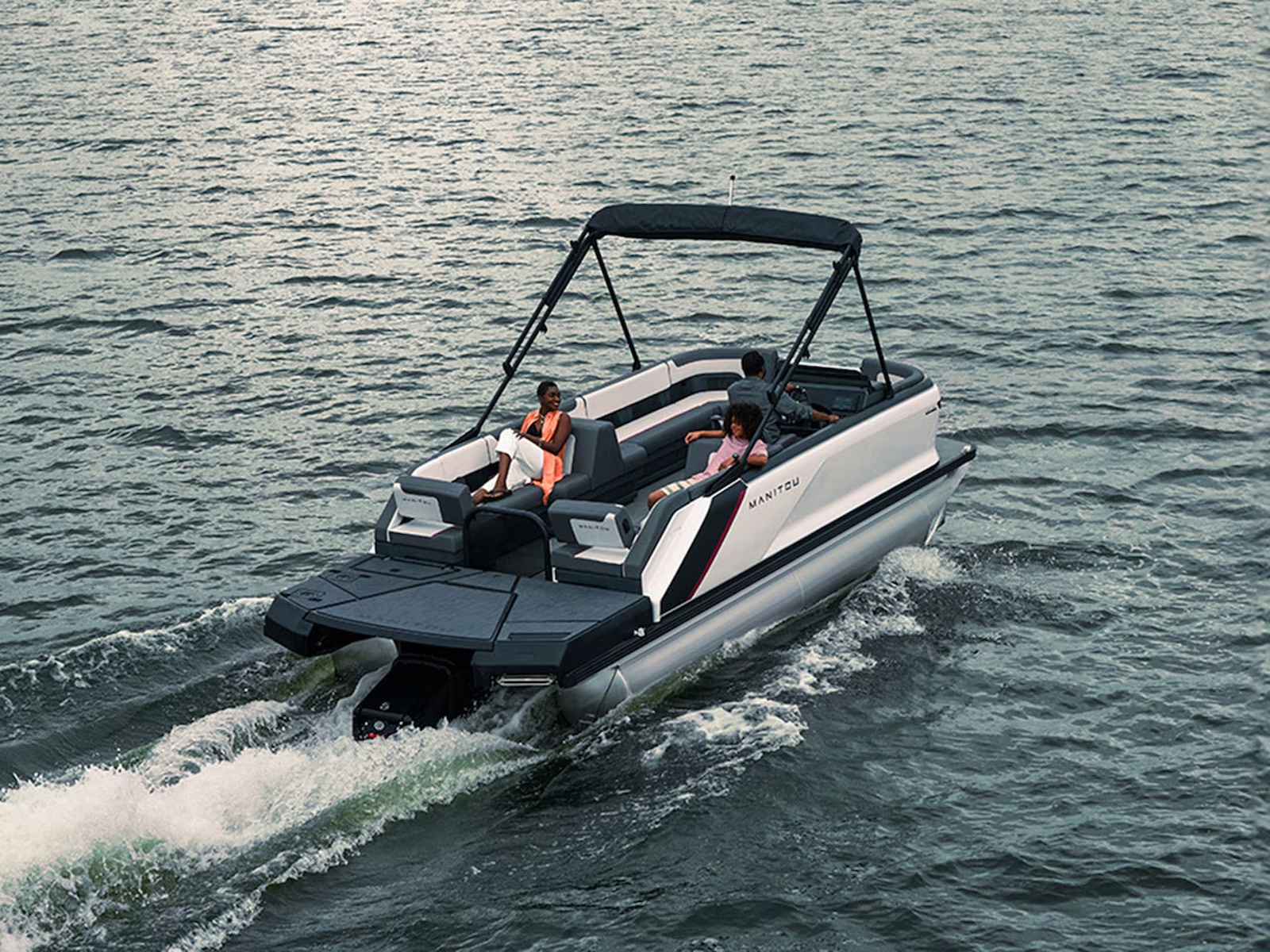 The Cruise 22 MAX Bench includes a full portside bench that extends the passenger side to midship. With max capacity, there's room for up to 11 people. This model features the game-changing MAX Deck and is rigged with a Rotax outboard engine with Stealth technology.