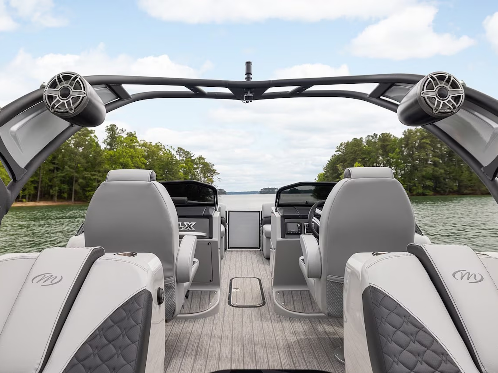 The LX 27 SRS includes sun loungers with electronically actuating back rests accompanied with two dinette tables to accomodate the whole crew in comfort. Room for up to 16 persons and a max horsepower of 400 HP (900 HP Dual Engine).
