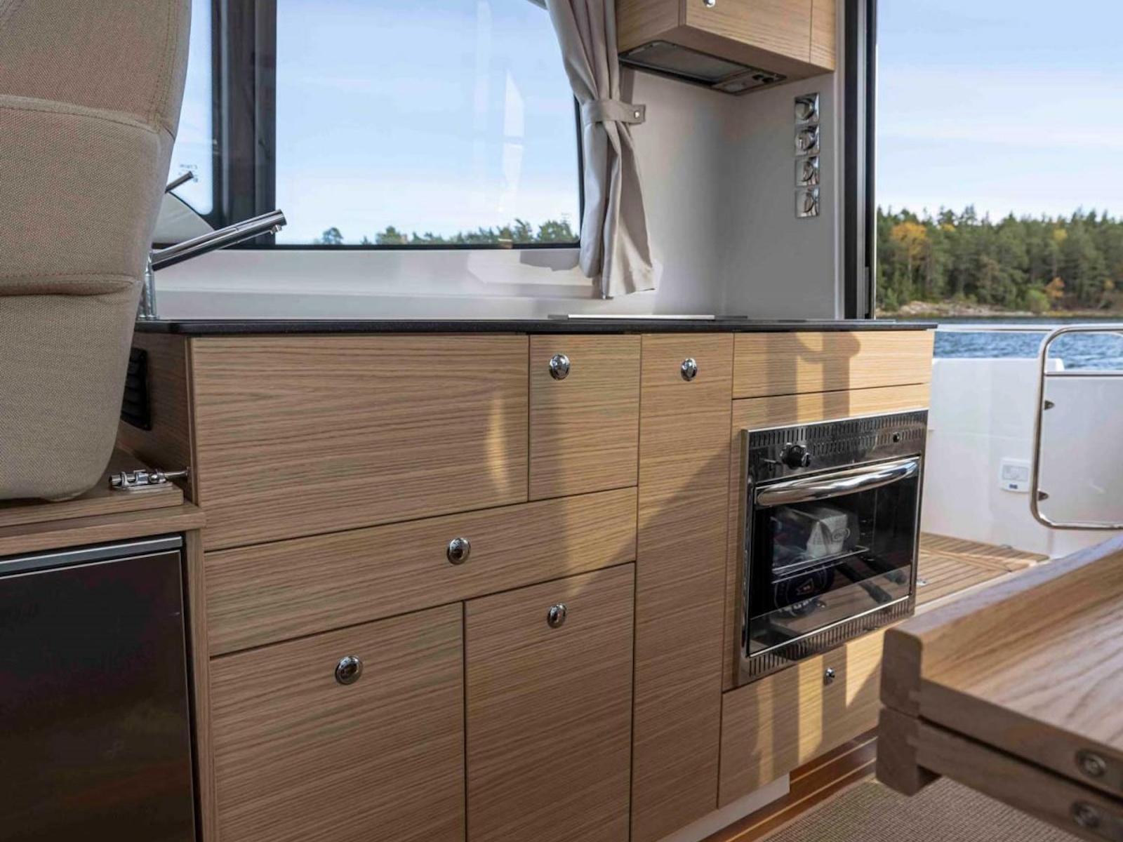 - The new modular galley provides more storage space and a wider range of opportunities to meet individual requirement. Options include gas, electric or induction hob, oven or microwave; extra cool box (36 liters), freezer or extra storage lockers. A kitchen fan and extra overhead lockers are also available as an option.