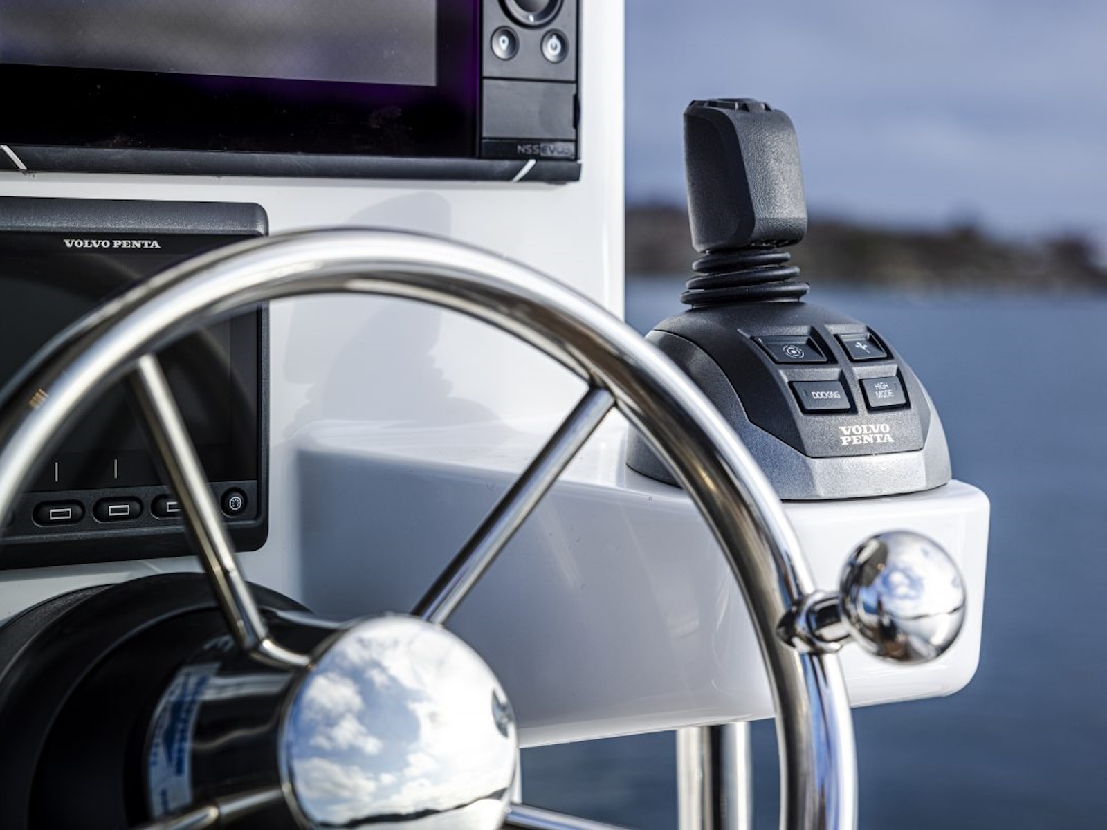 Joystick Docking makes docking easy and safe. The driver just pushes or rotates the joystick in the desired direction and the boat follows: forward, reverse, sideways, or spins on its own axis. It’s simple and logical, and all maneuvers are totally intuitive.