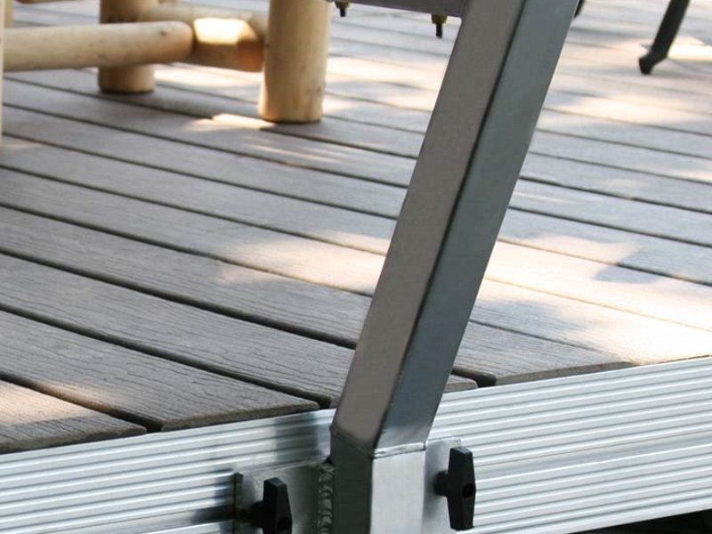 We offer Trac Dock in 4’, 5’, and 6’ widths and 5’, 10’, and 15’ lengths, or, with Floating Trac Dock, in lengths up to 20’. Sections easily bolt together to make virtually any dock configuration.