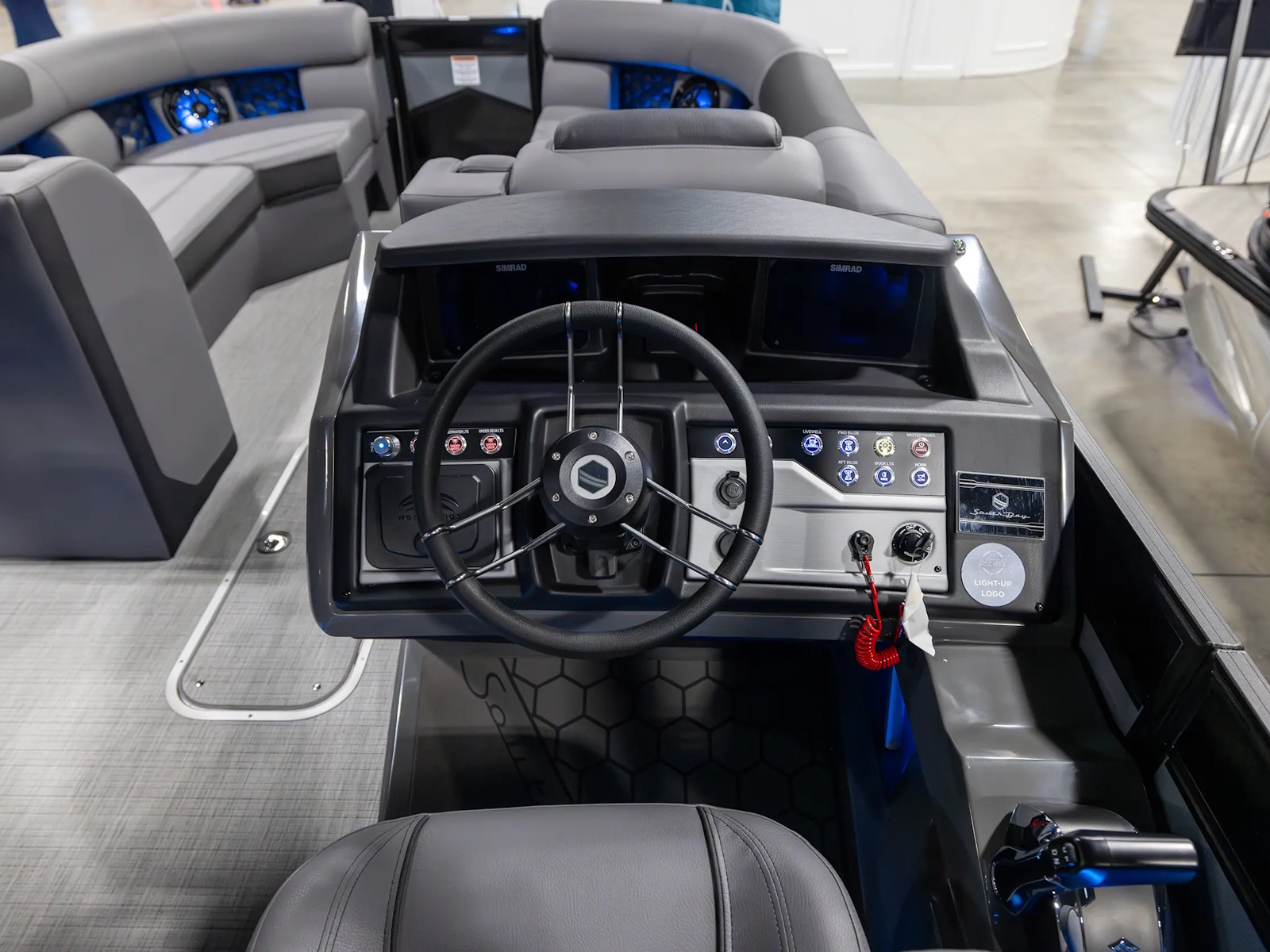 - Built in helm riser with binnacle arm