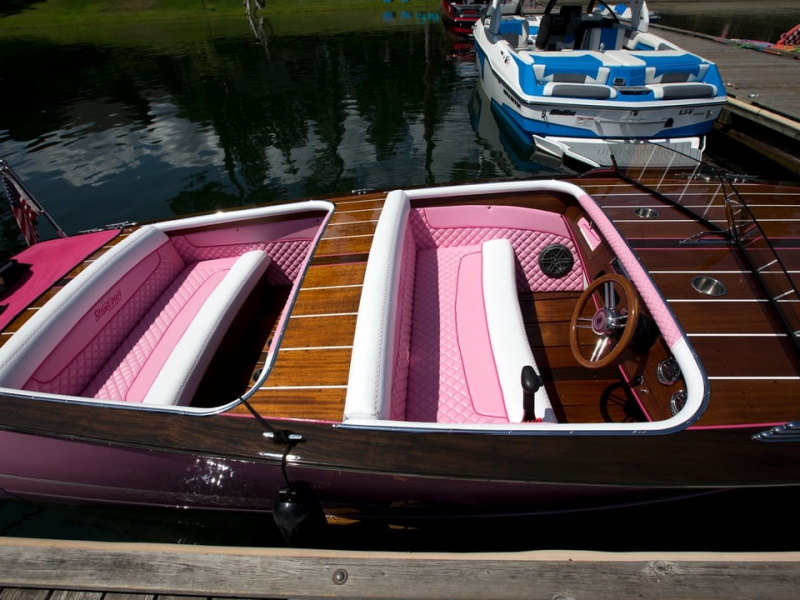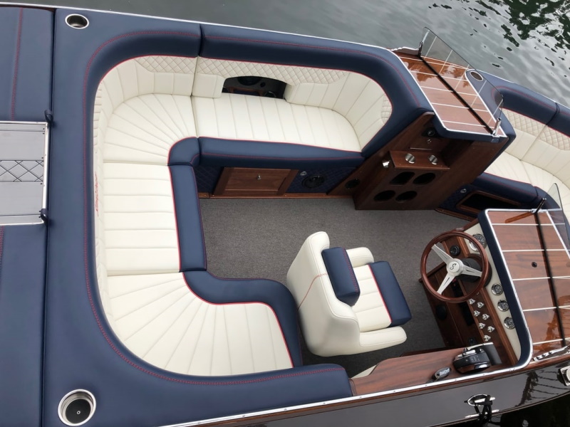 The belle is 21' in length with an inboard 6.2L Mercruiser or 2.3L turbo charged Ecoboost engine. The boats do an incredible job handling decently rough water for their size. You can build yours with an open or closed bow for more seating up front if preferred. Sliding drawer cooler for keeping your drinks cold. Fusion stereo with a 10" JL audio subwoofer and 6 6.5" Hertz speakers.