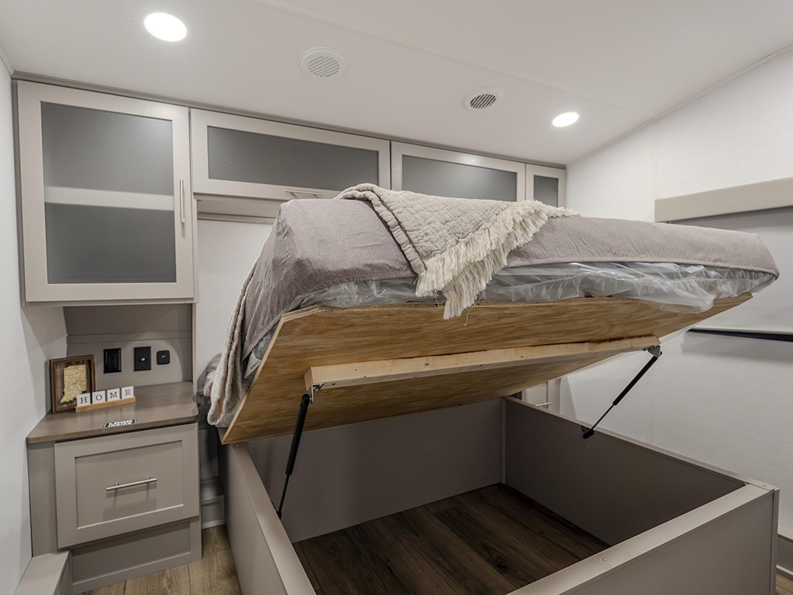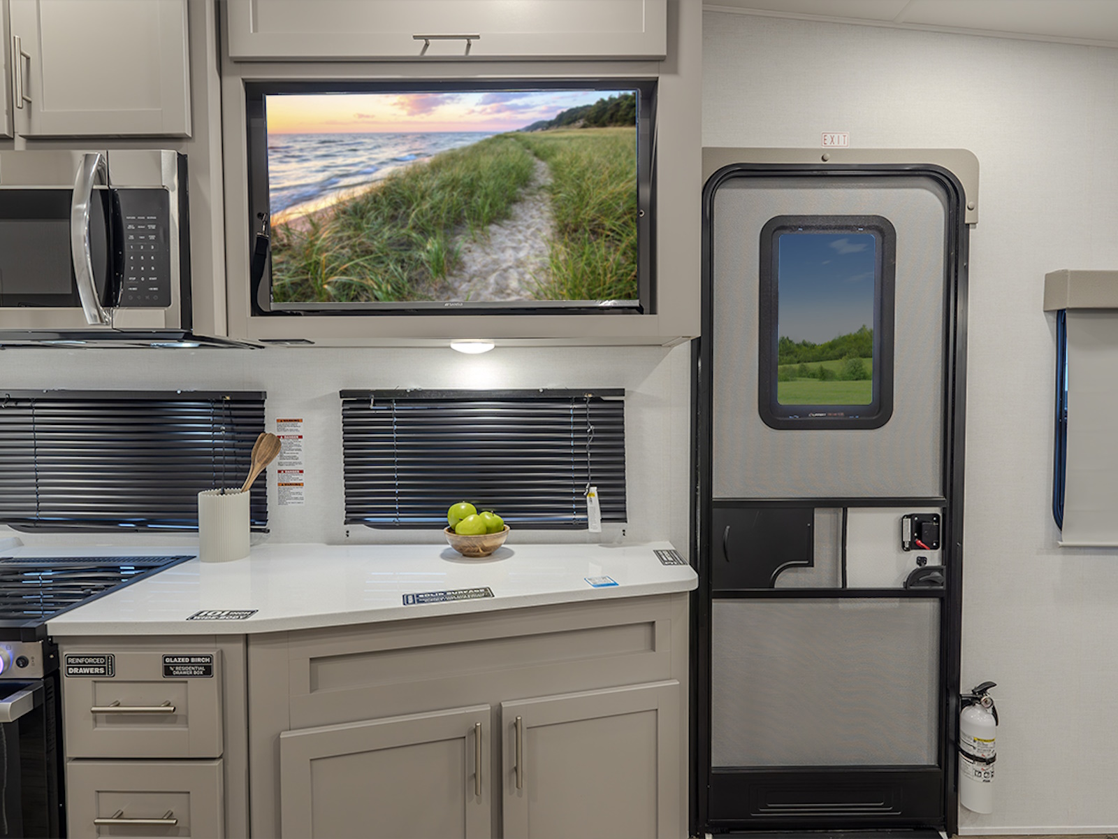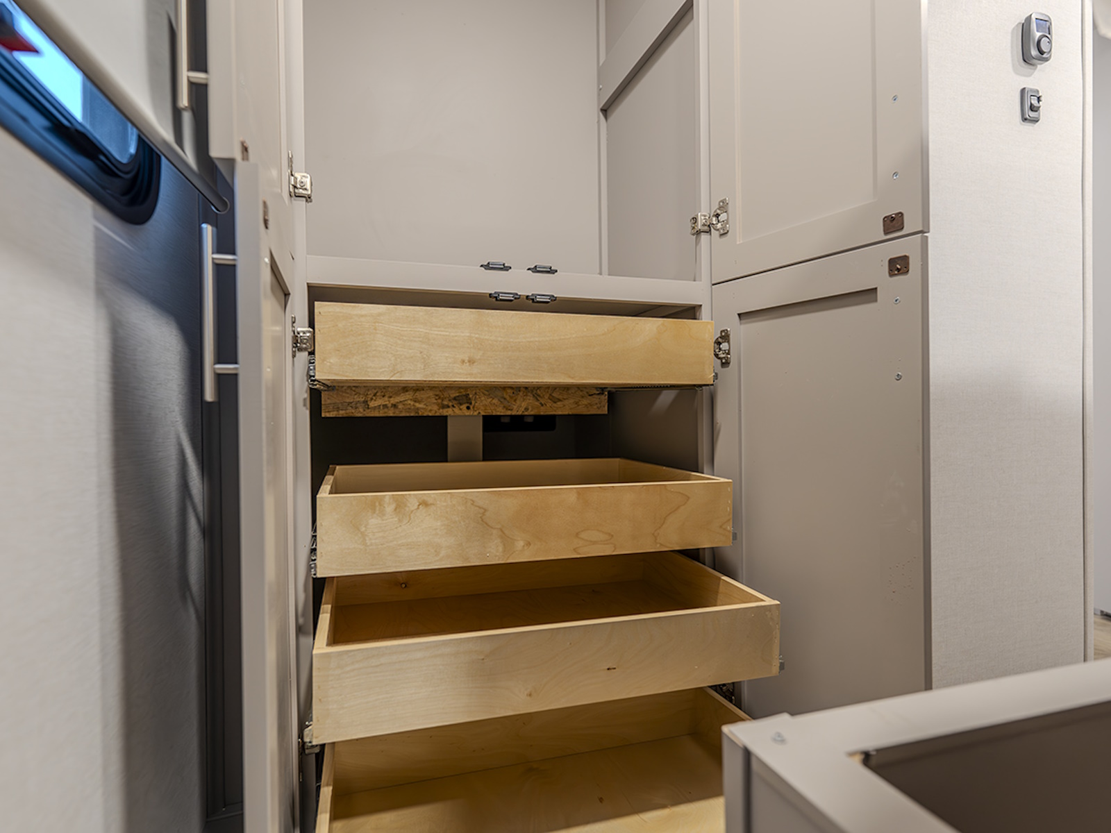 This RV is built for durability. With a benchmark chassis, Azdel composite sidewalls, and a seamless PVC roof, this RV is durable and low-maintenance. The no carpet zone with vinyl flooring makes cleaning easy and pet-friendly. Plus, flush slide-out floors provide extra space and safety.