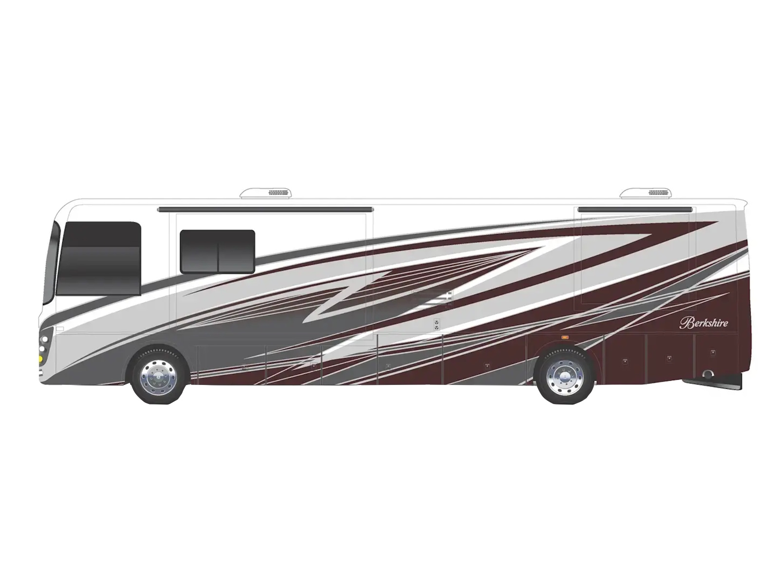 Experience luxury RV travel in a manageable size with the Berkshire 34B by Forest River. This Class A motorhome features three slides for ample space, a king-size Tilt-a-View bed, and a well-equipped kitchen. Perfect for comfortable and stylish road trips.