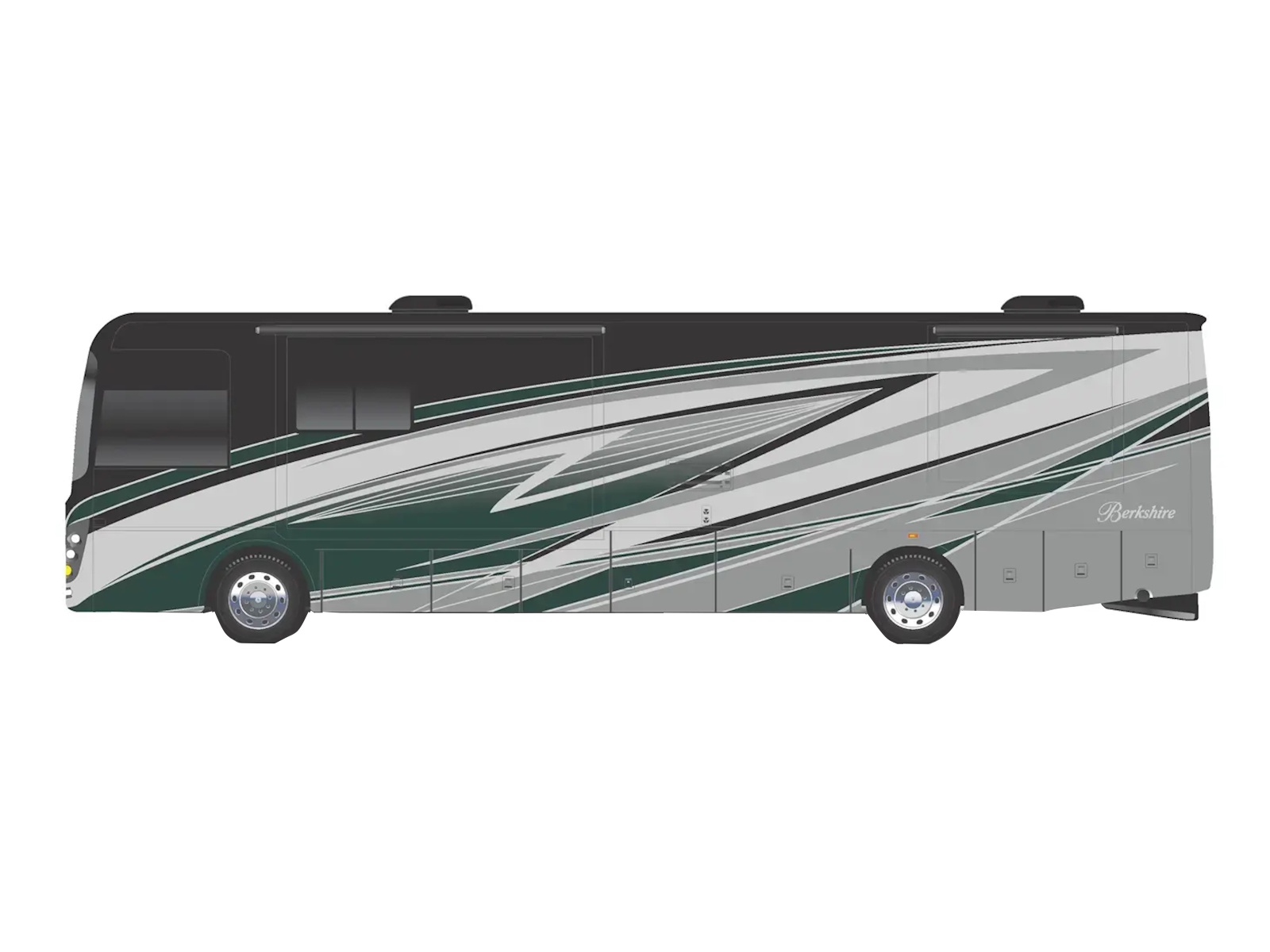 The Berkshire 40F by Forest River is a luxurious bunkhouse motorhome with two full baths. Enjoy a king-size Tilt-a-View bed, a well-equipped kitchen with a residential refrigerator, and a unique drop-down overhead bed. This Class A RV is perfect for comfortable and stylish family travel.
