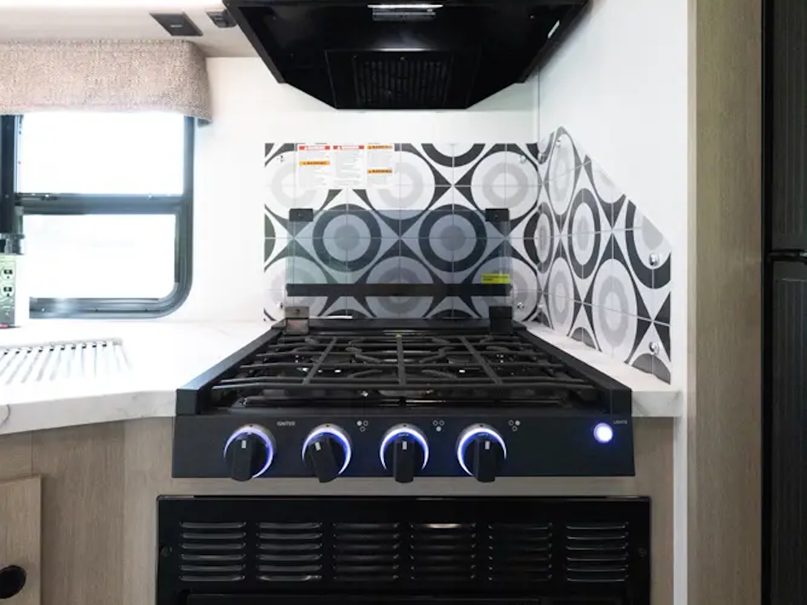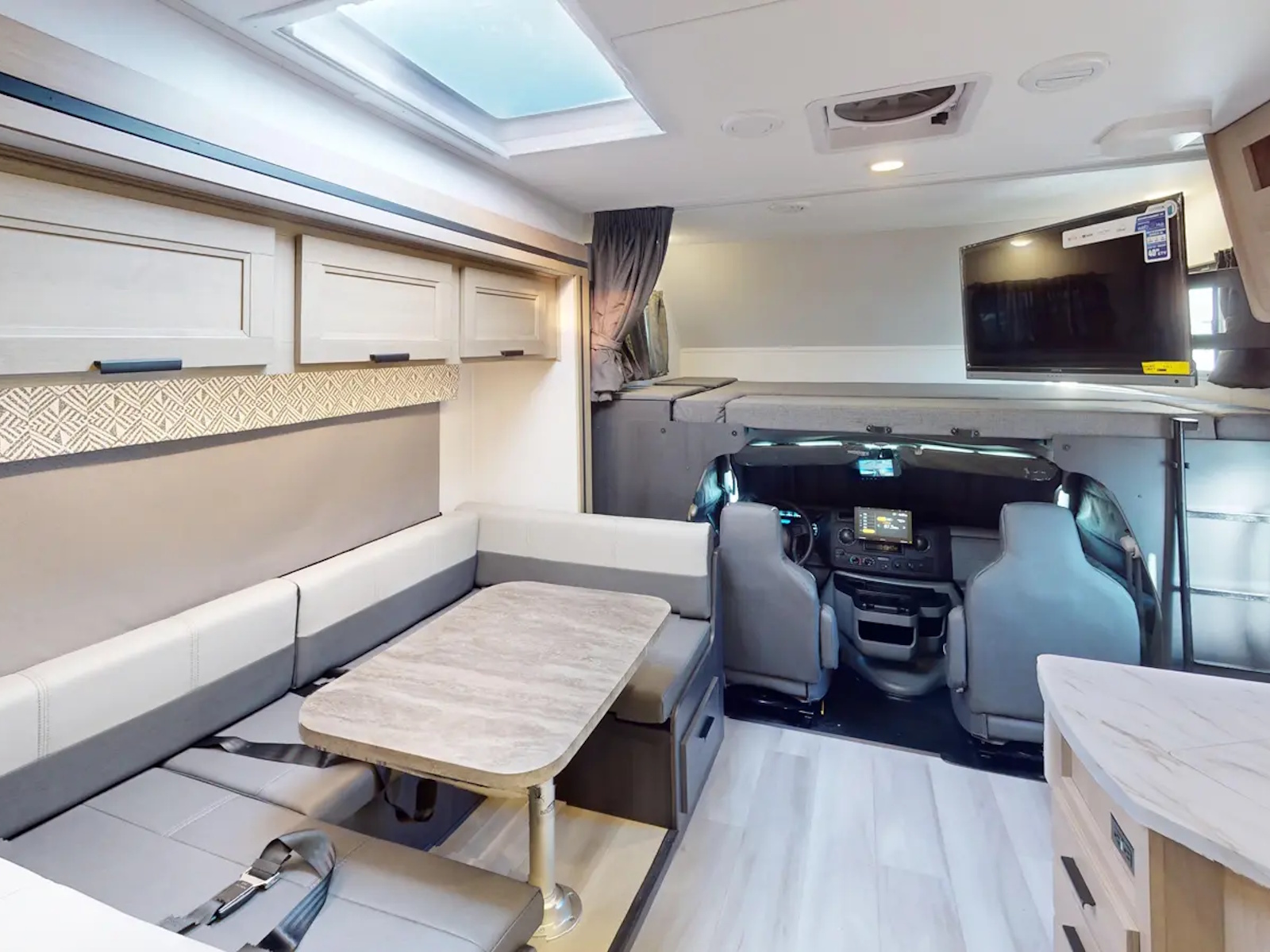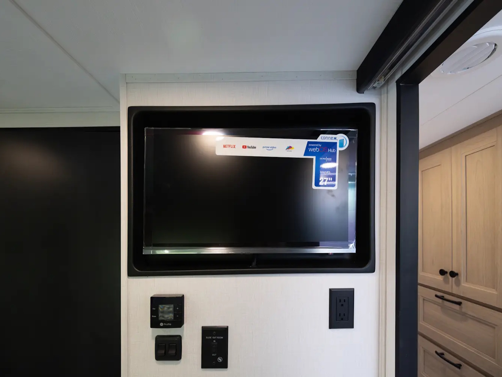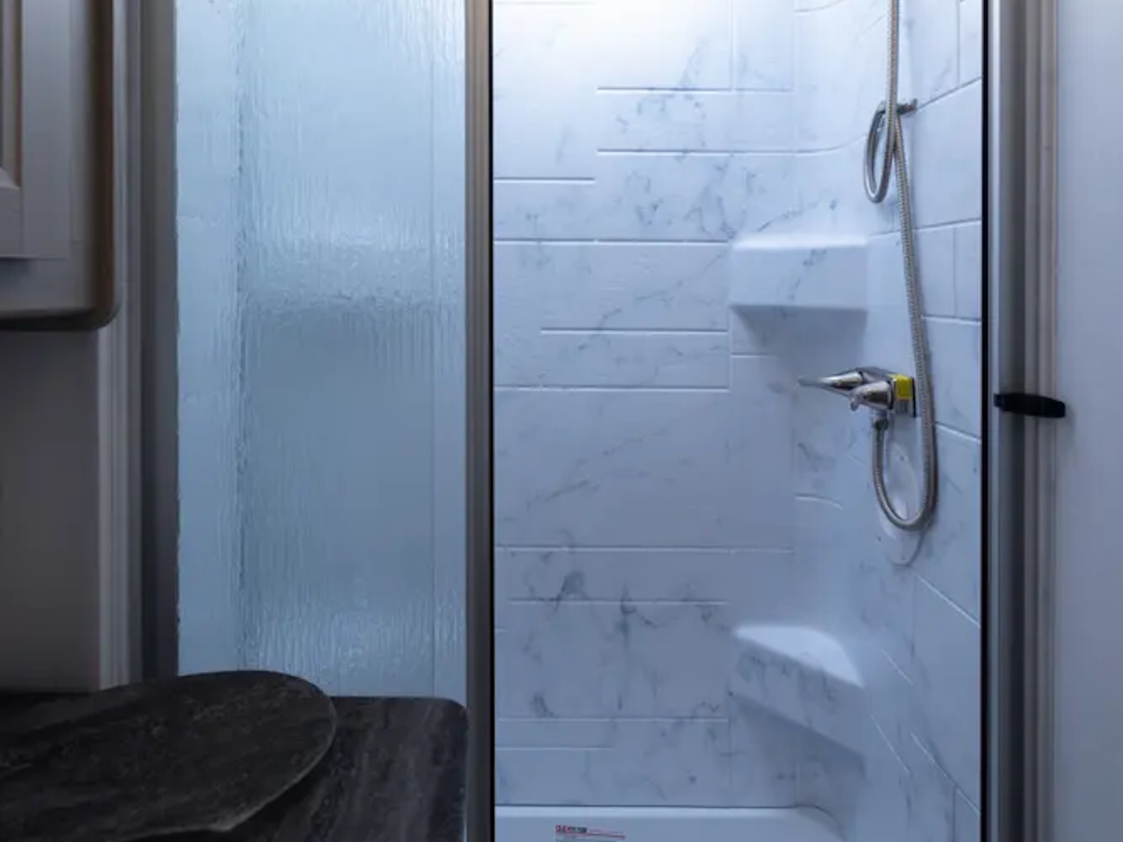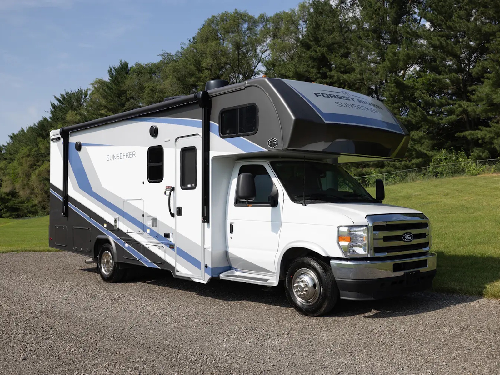 The 2440DS is the perfect couple's rig! There's a queen bed slideout in the rear of the driver's side next to a roomy rear bath with wardrobe and linen closet, plus a residential-style shower surround with built-in molded seat. A second slideout can hold a U-shaped dinette or pair of theater seats, depending on preference. The kitchen is well-appointed with a cooktop, convection microwave, and 12V stainless steel fridge. Two pantry cupboards and overhead cabinets provide additional storage.