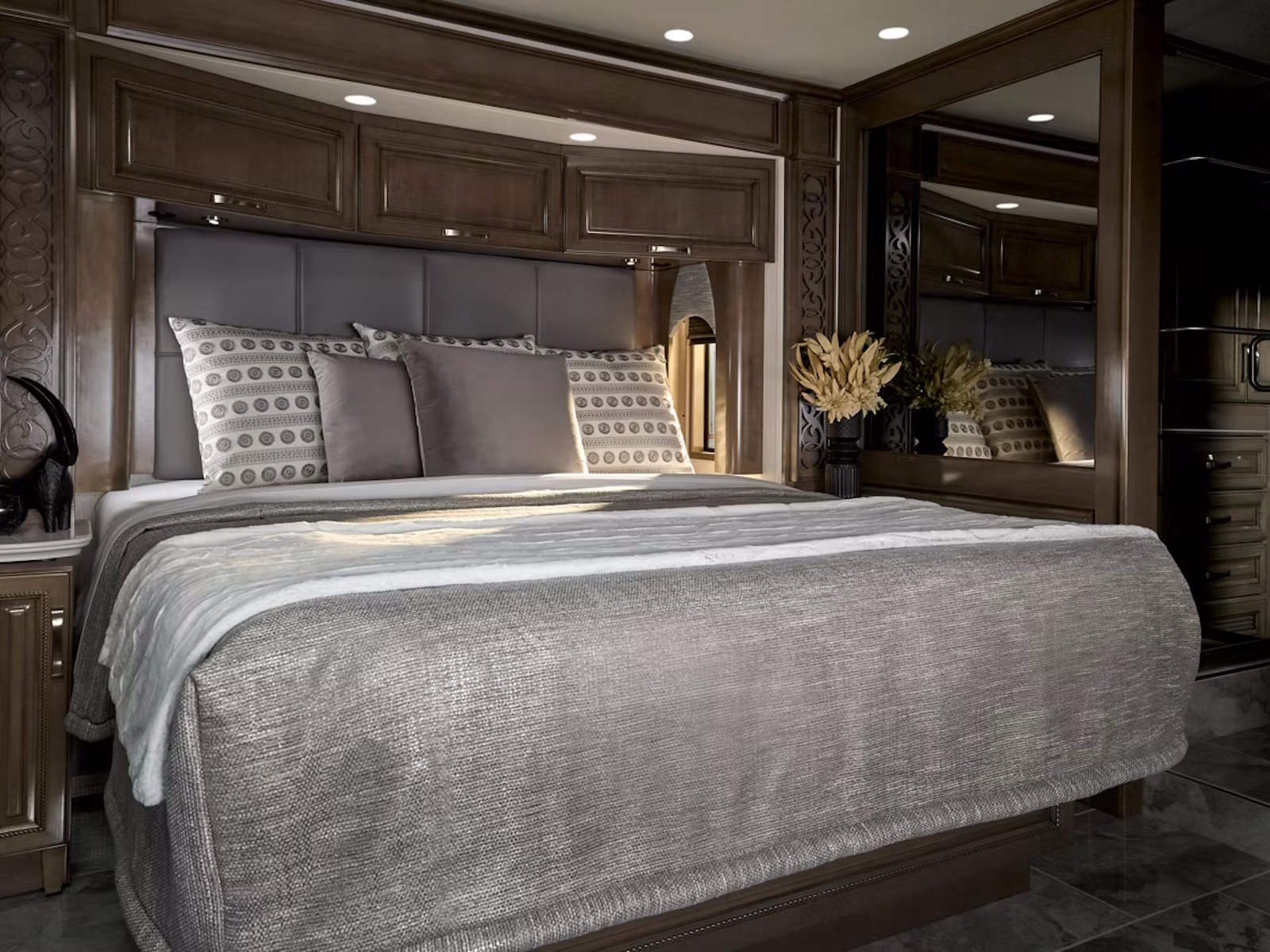 The 2026 Essex offers the perfect balance of elevated comfort and customization options for discerning travelers. Built on your choice of Freightliner® or Spartan® tag axle chassis with a powerful 605 HP engine, the Essex combines responsive handling with consistent power across four meticulously designed 45' floor plans, each maximizing your living space while reflecting your unique travel preferences.